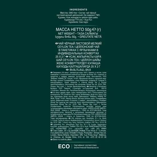 Чай Ahmad Ceylon 2г х 25 пакетиков с ярл. Россия