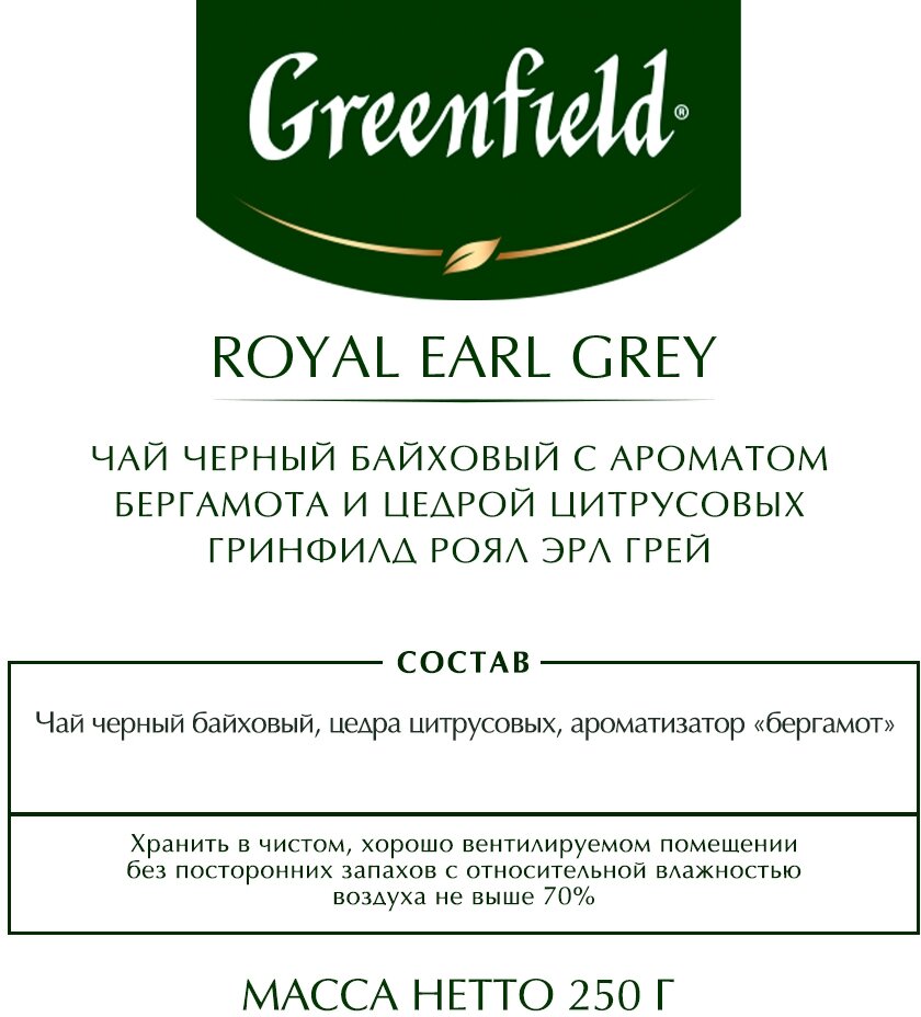 Чай листовой GREENFIELD "Royal Earl Grey" черный, 250 г. интересное: