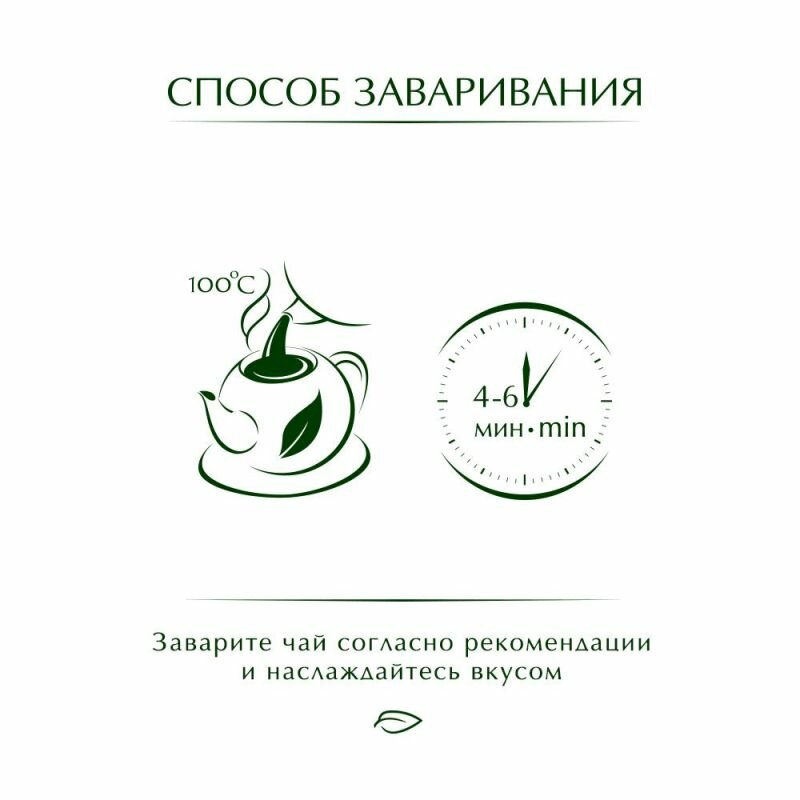 | Способ приготовления | засыпать чай в заварочный чайник, залить кипятком и настоять 4-6 мин. |