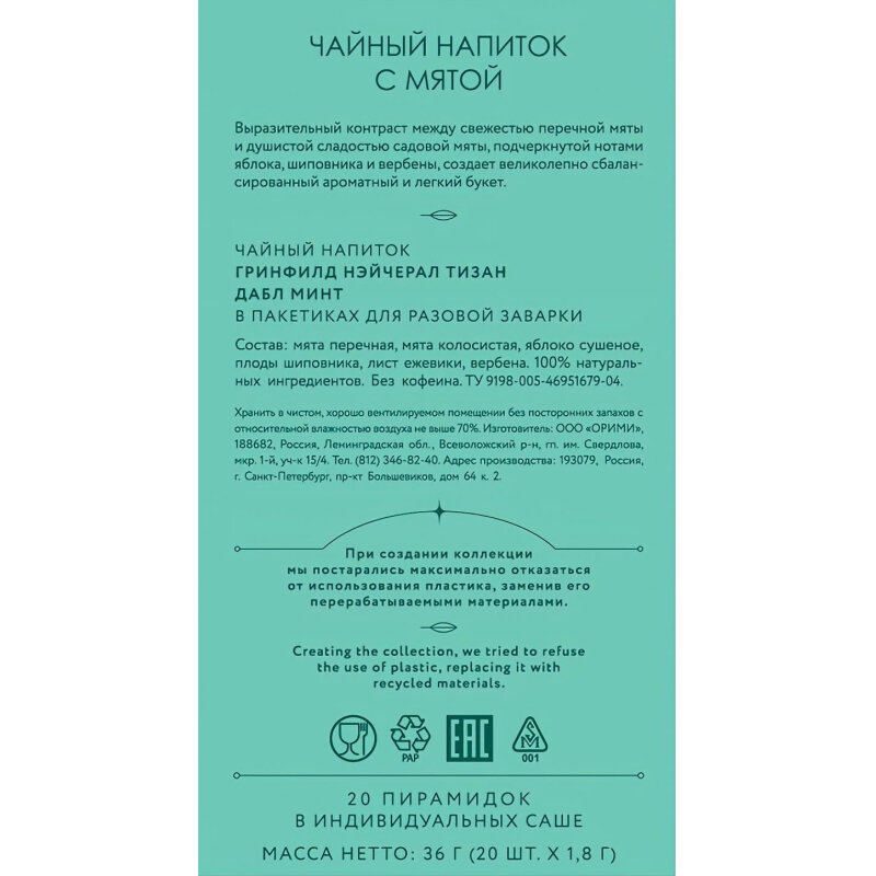 Чай GREENFIELD "Double Mint" травяной, 20 пирамидок интересное: