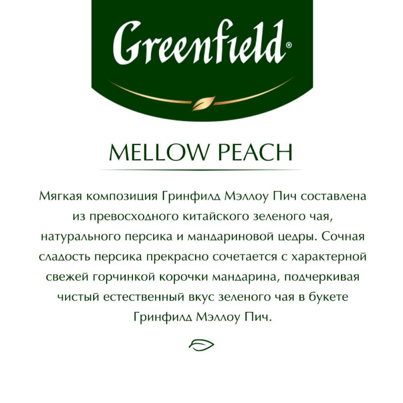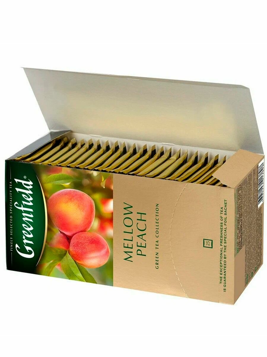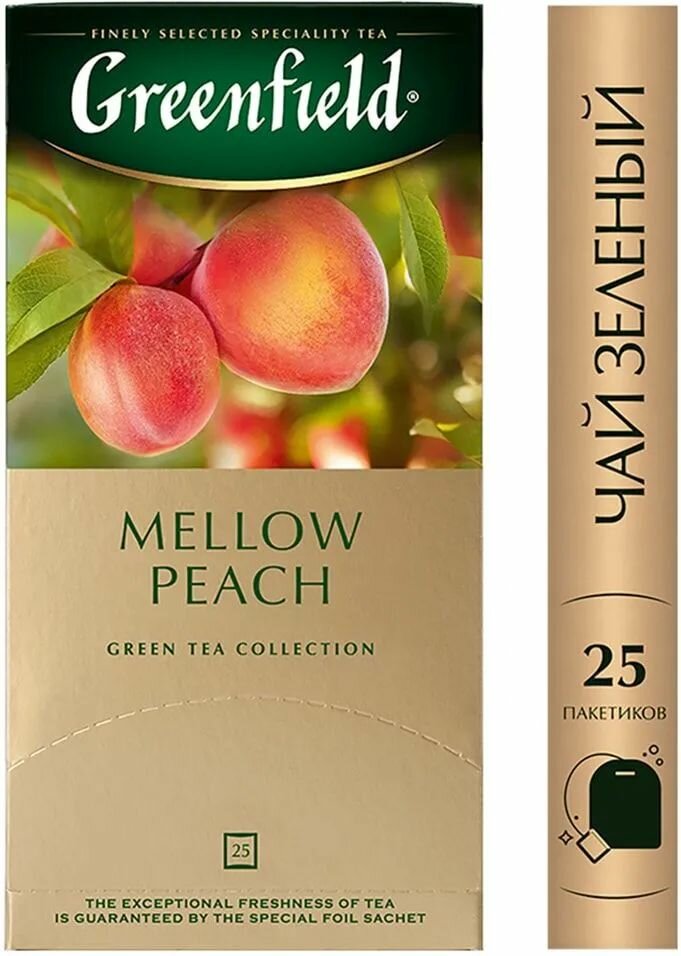 Чай зеленый в пакетиках для чашки Greenfield Peach Mellow, 25*1,8 г интересное: