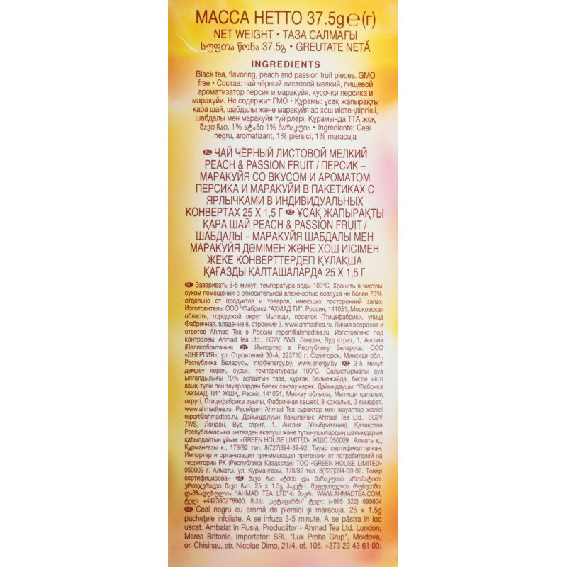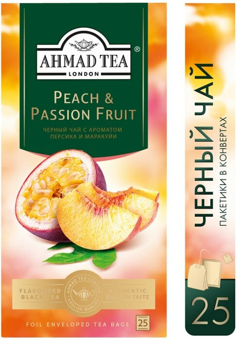 Чай черный Ahmad Tea Peach & Passion fruit в пакетиках, 25 пак. интересное: