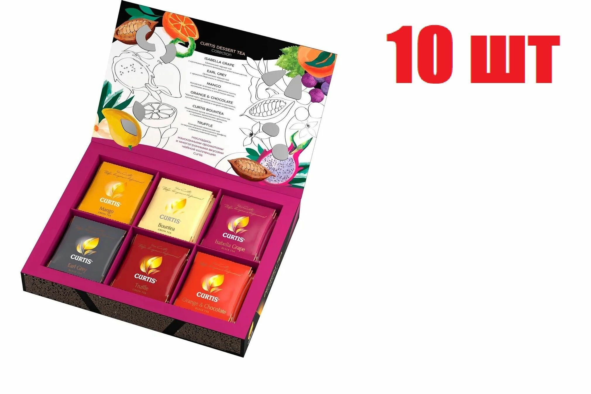СохранитьЧайное ассорти Curtis Dessert Tea Collection подарочный набор 30 пакетиков 6 вкусов (10 коробочек) интересное:
