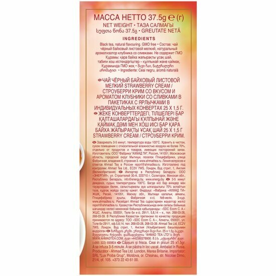 Чай "Ahmad Tea", Чай Строуберри Крим, с аром. клубники со сливками, пак. в к/ф, 25х1,5г