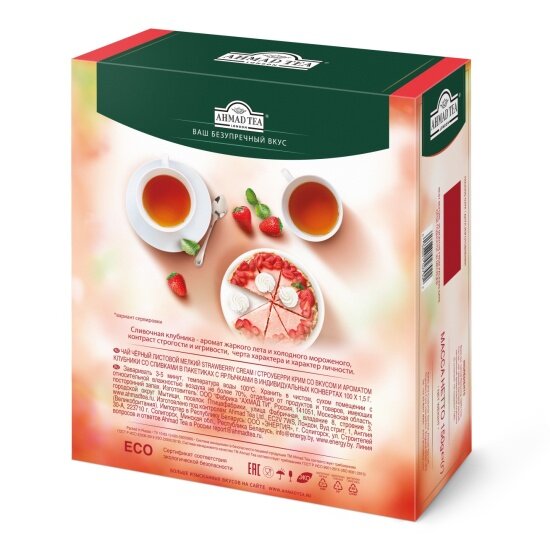 Чай Ahmad Tea Строуберри Крим, черный, пакетики в конвертах, 100x1,5г/уп