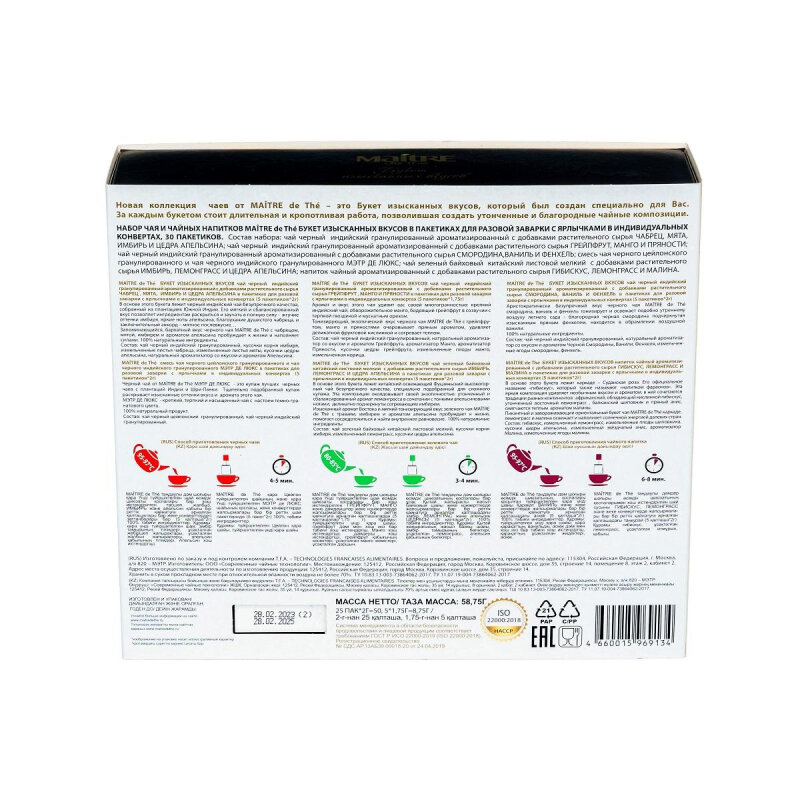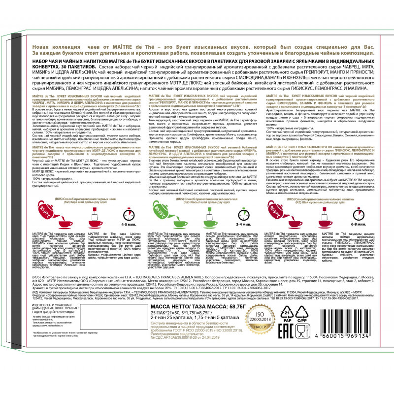 Набор чая MAITRE DE THE ассорти в пакетиках "Букет изысканных вкусов", 6 видов, 30 шт подарочный мэтр