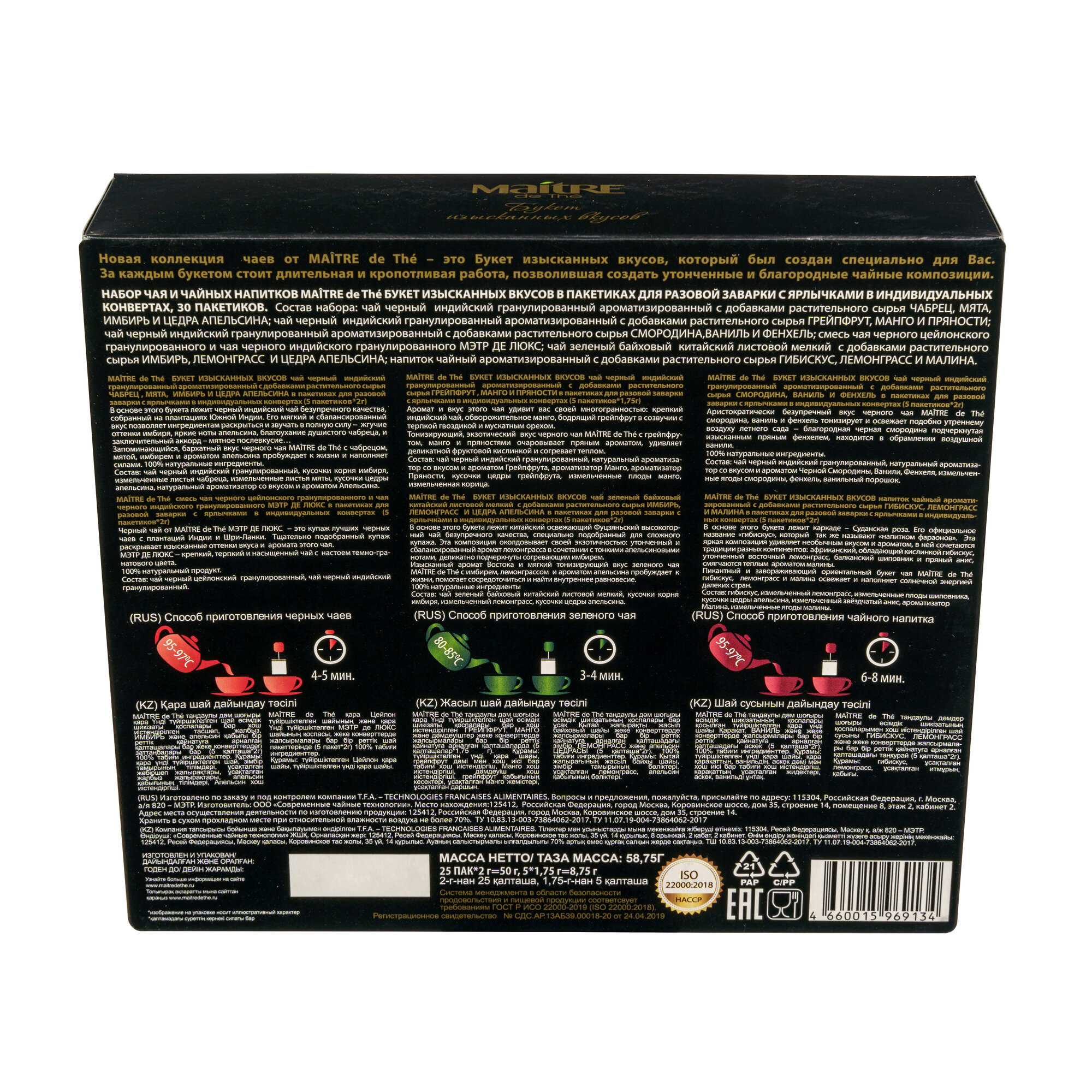 Набор чая подарочный в пакетиках ассорти Maitre de The "Букет изысканных вкусов", 6 видов, 30 шт мэтр