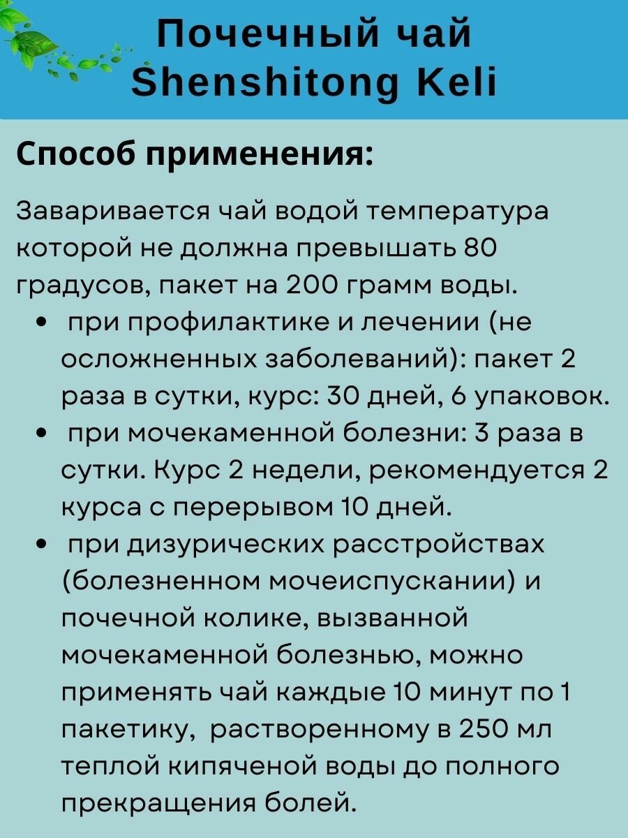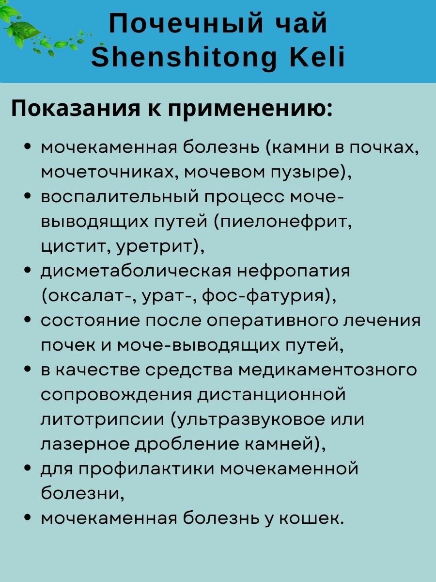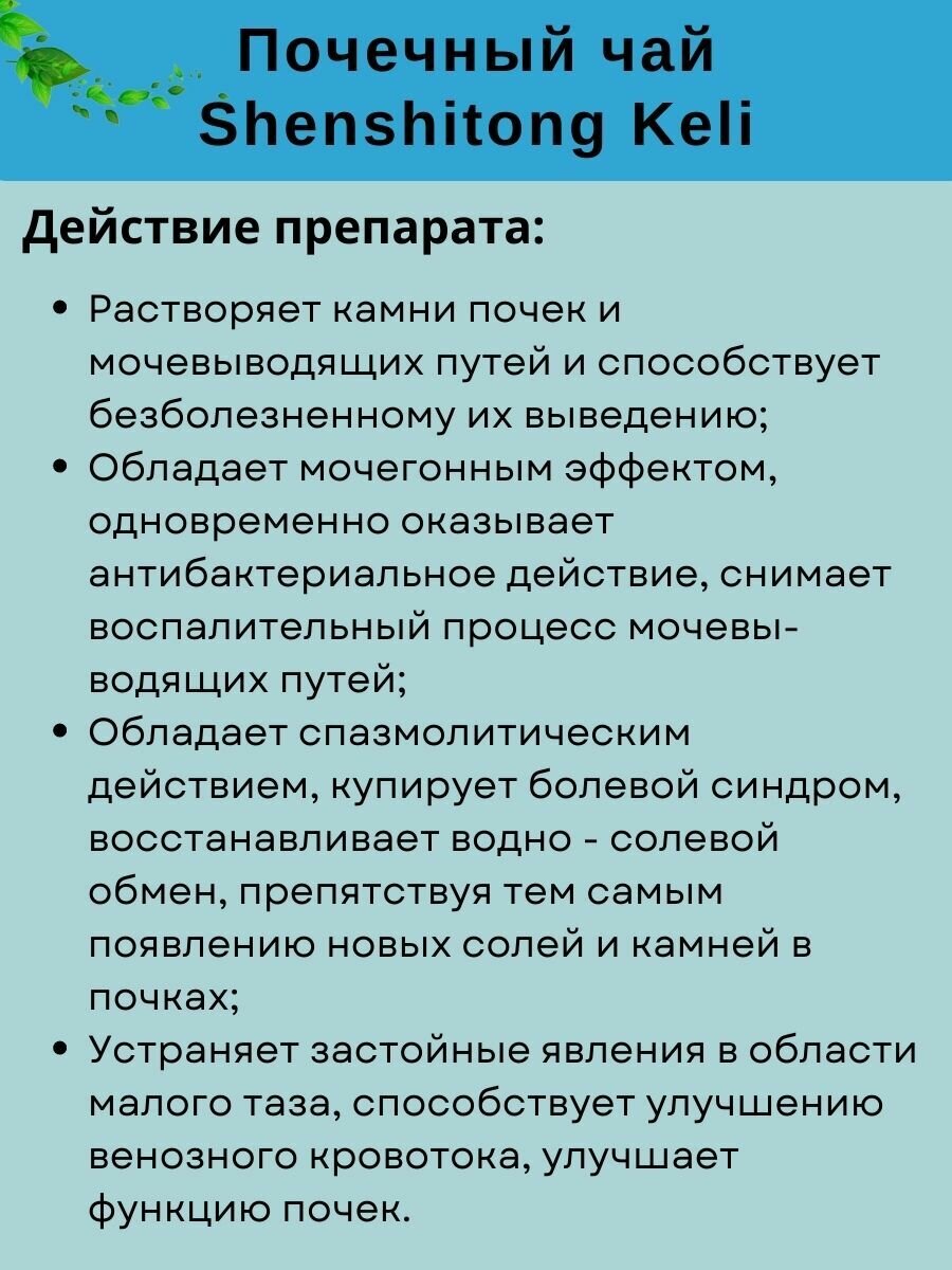 Чай "Шеншитонг келли" (ShenShiTong Keli) от камней в почках и лечения мочекаменной болезни 10 пак. по 15 гр. интересное: