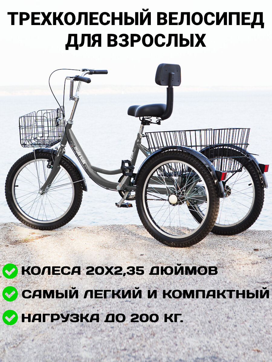 Трехколесный велосипед для взрослых, с 2 корзинами, цвет серебристый интересное: