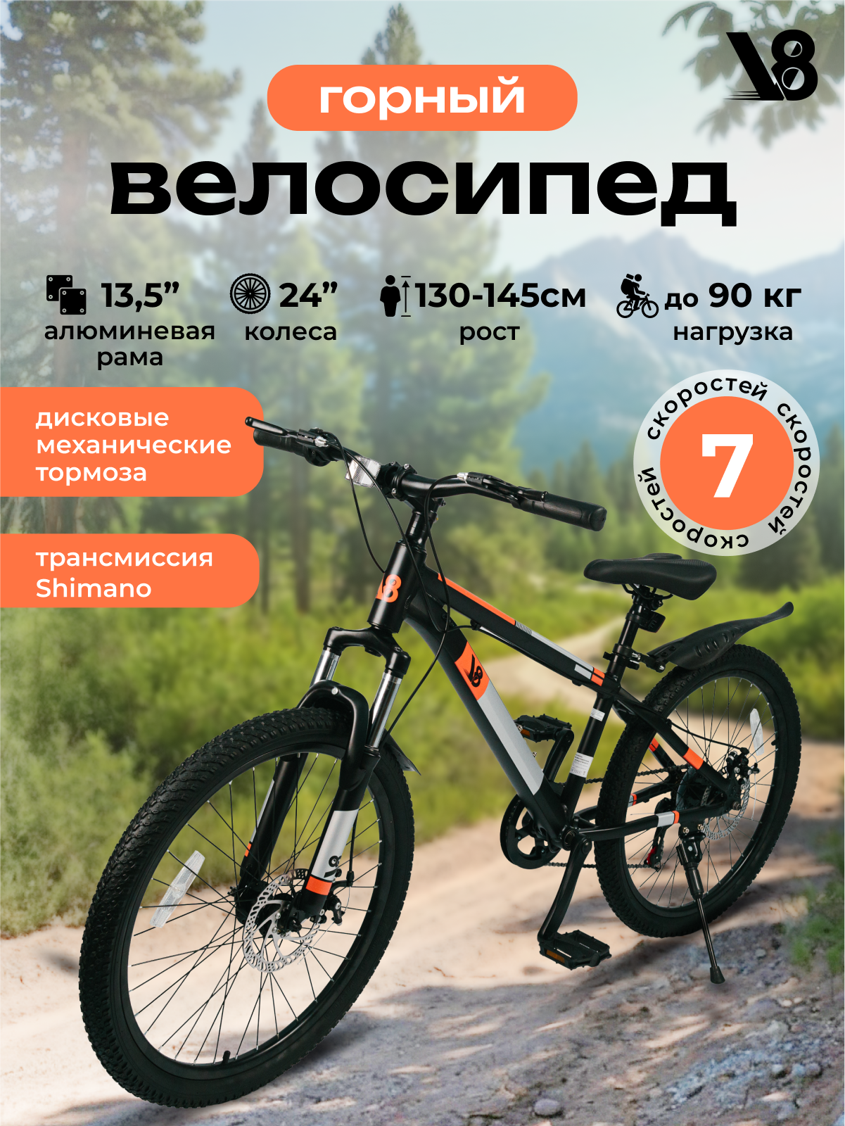 Велосипед взрослый горный скоростной V8 V-M2431G диаметр колес 24", 7 скоростей, алюминиевая рама 13,5" интересное: