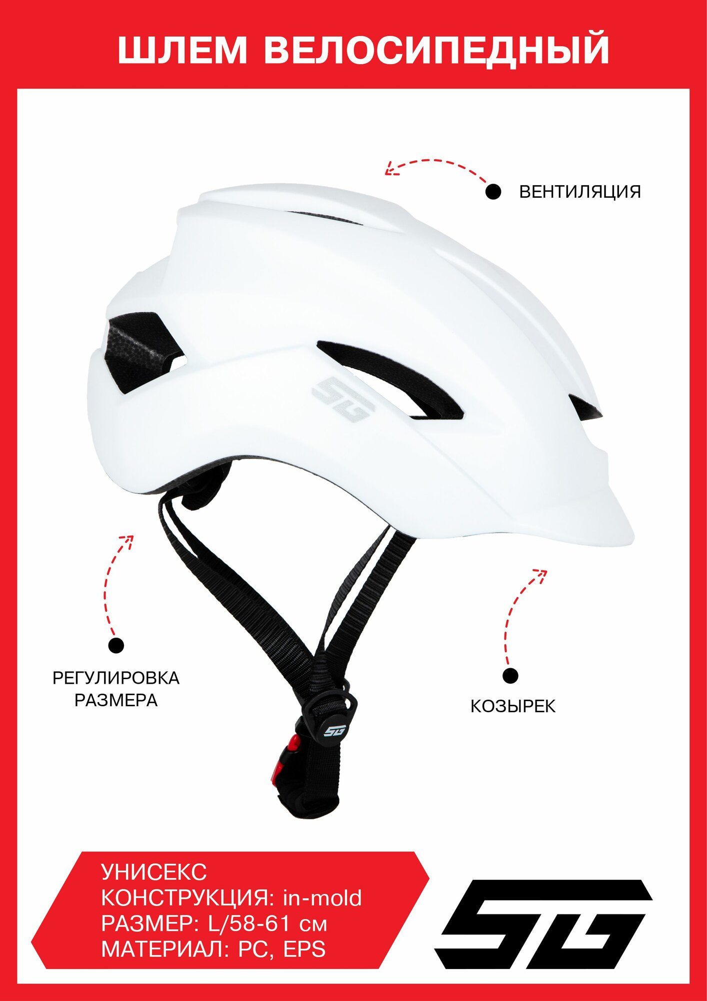 Шлем STG WT-099, L (58-61 см), белый Х112426