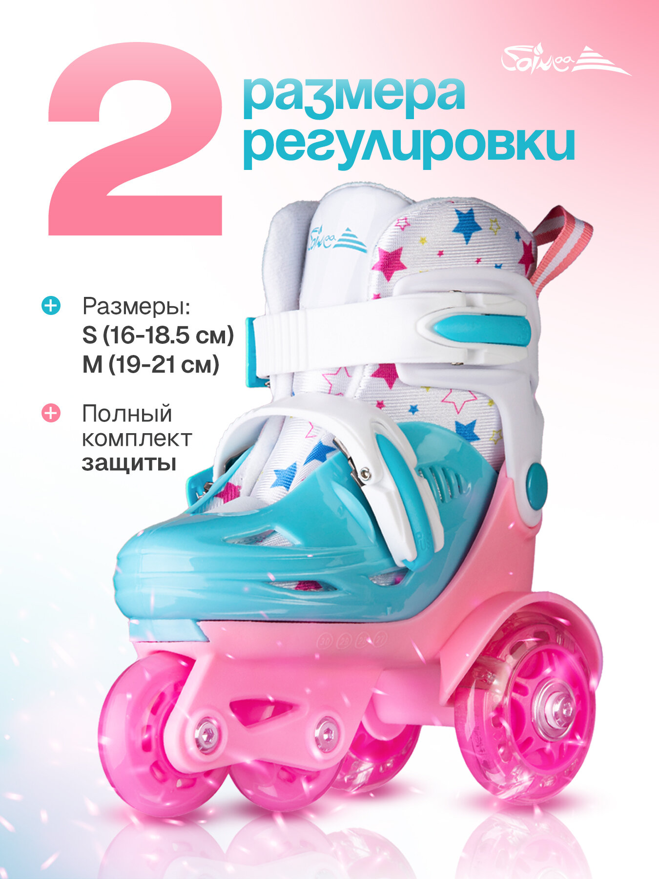 | Особенности | защита в комплекте, коньки-ролики, раздвижные, с тормозом, светящиеся колеса, сумка-переноска в комплекте, шлем в комплекте |