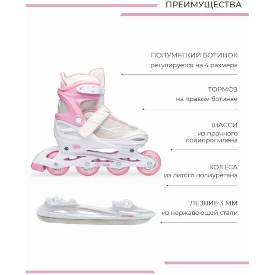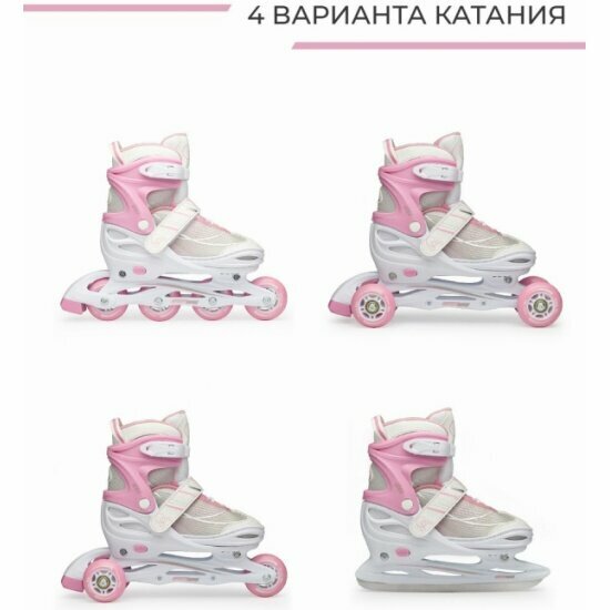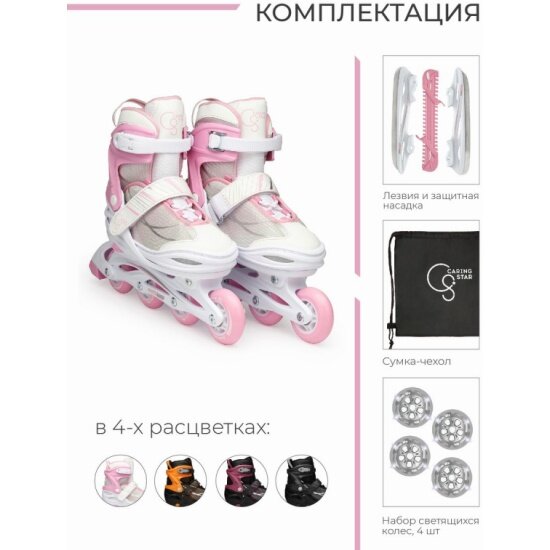 Роликовые коньки раздвижные 4 в 1 Сaring Star Caring Star R1 размер 34-37, белый/розовый интересное: