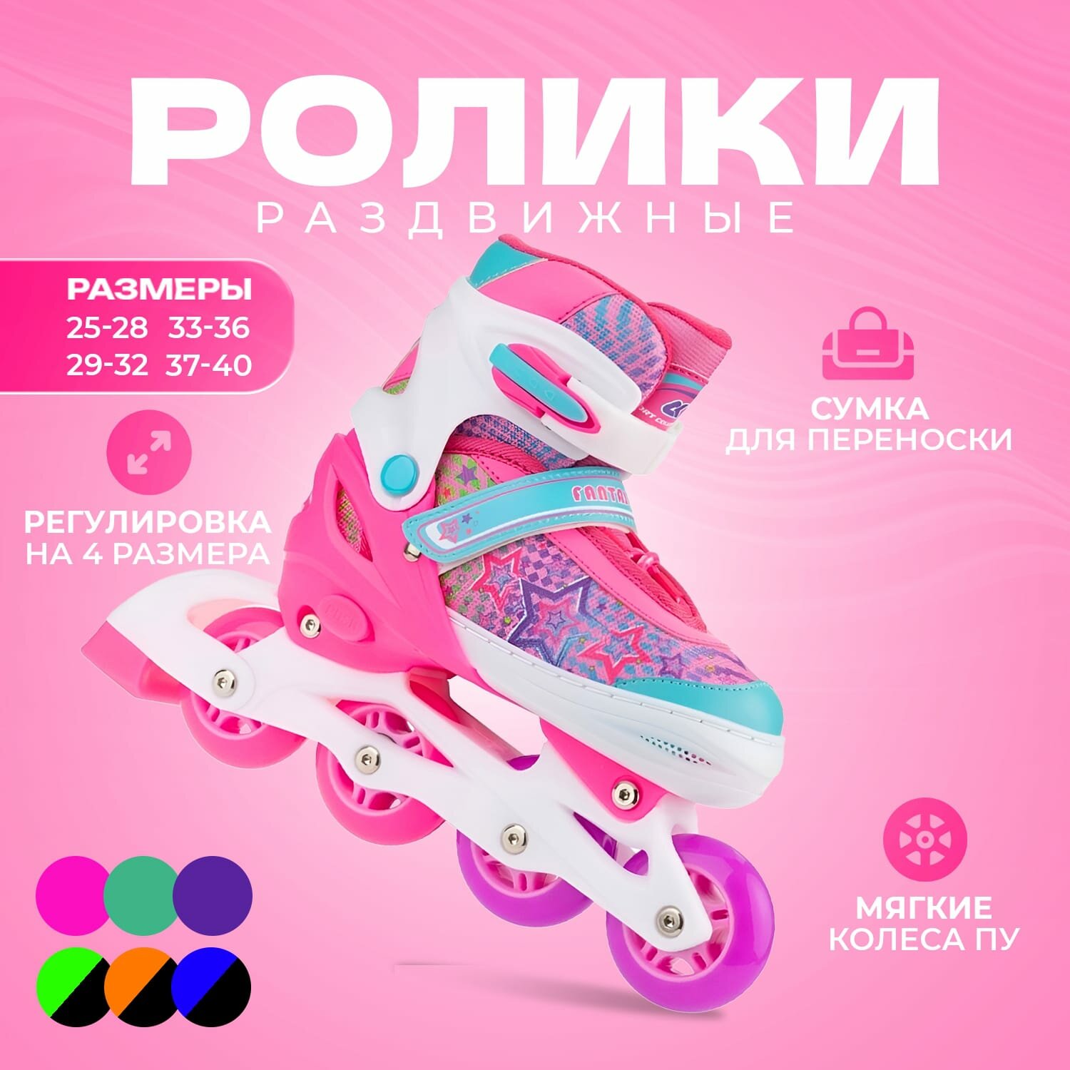 Раздвижные роликовые коньки Fantastic Pink интересное: