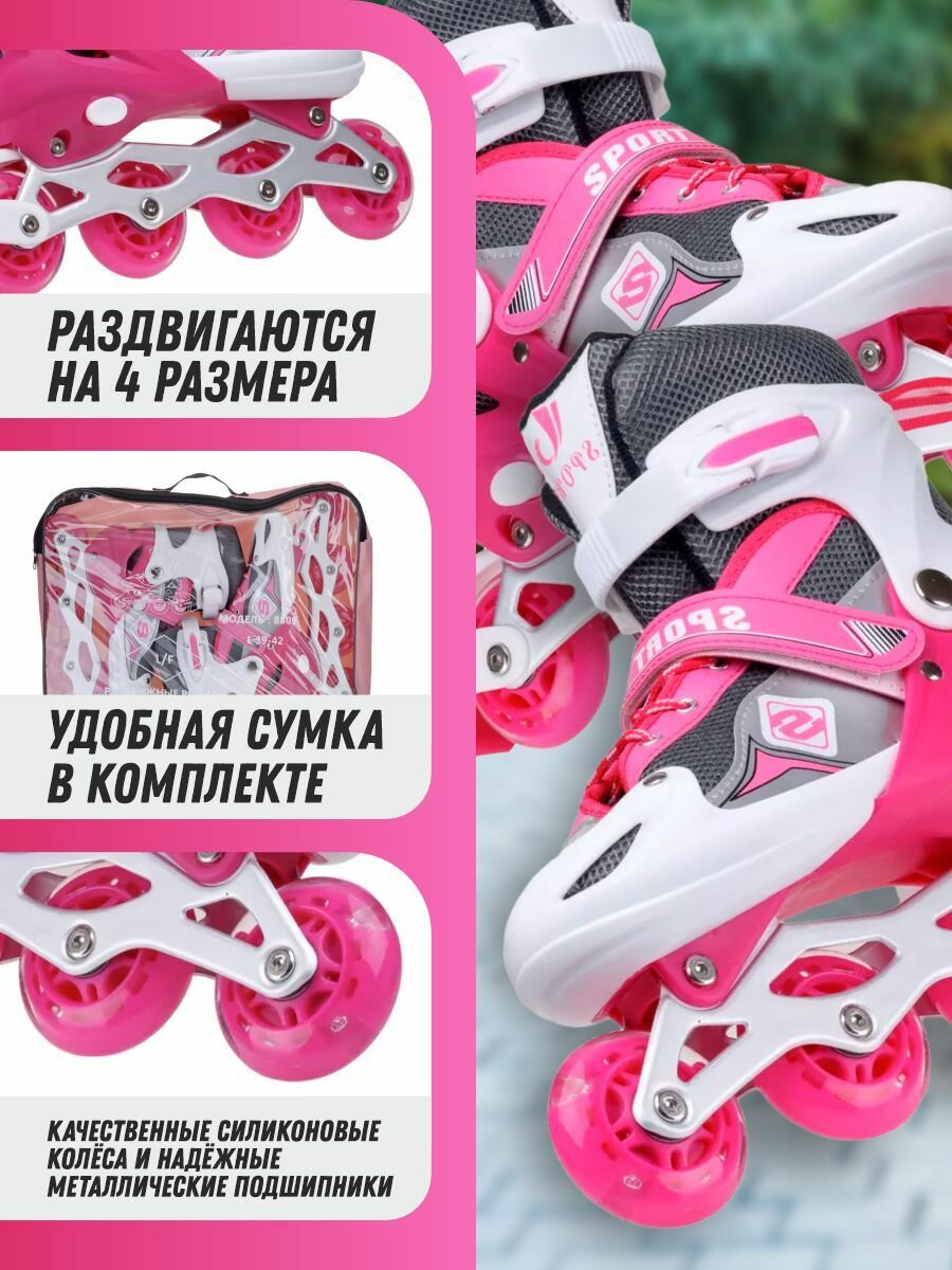 Роликовые коньки раздвижные, розовый, L, 8807