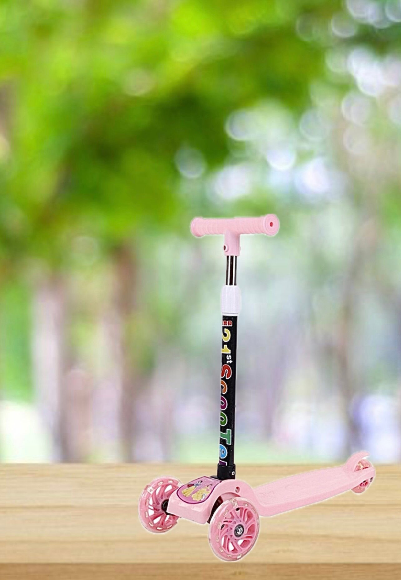 Самокат детский трехколесный COMIRON Yeenot "Зверята", регулируемая складная ручка, светящиеся колеса 110 и 75 мм, нагрузка до 40 кг, розовый / 1 шт.