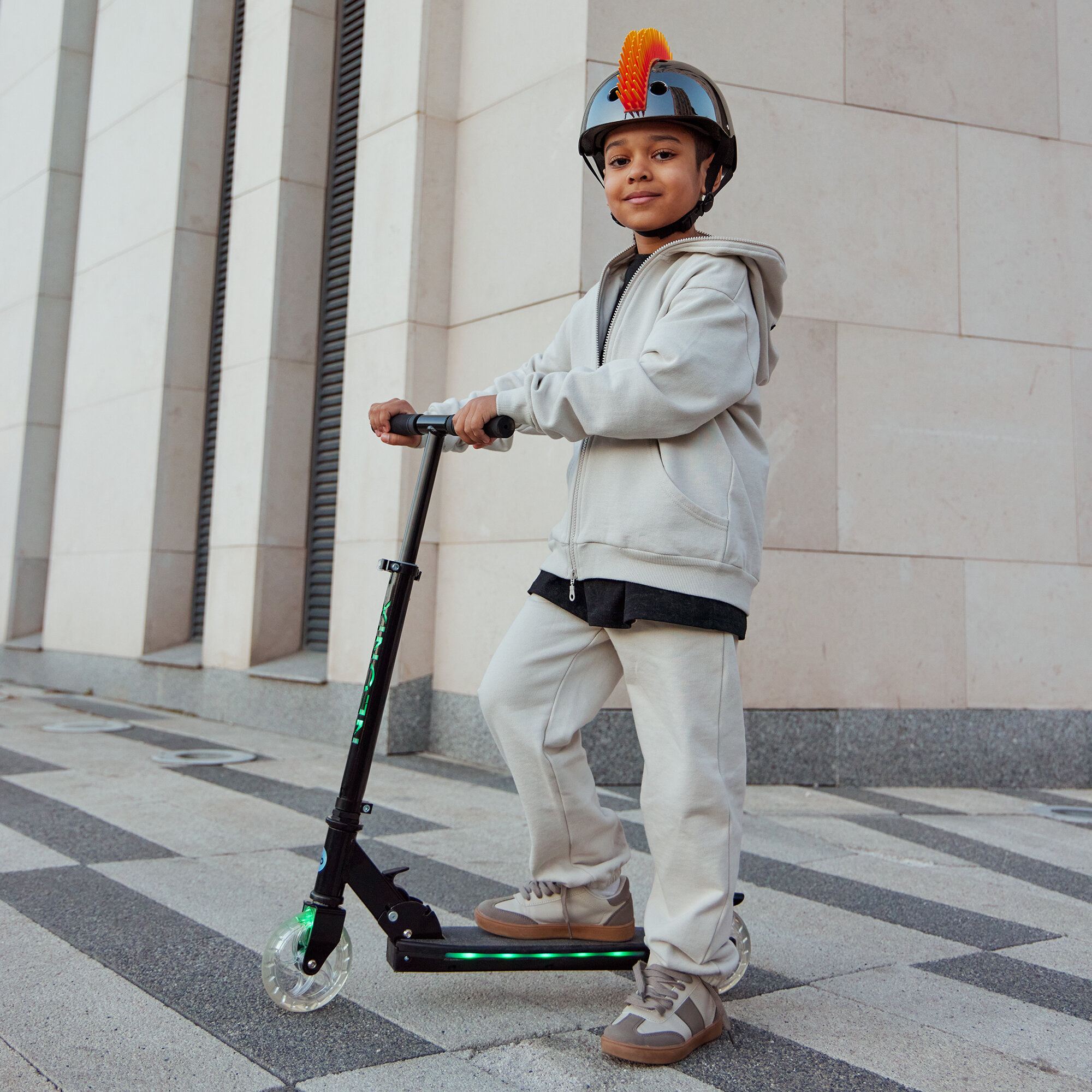 50036, Самокат Happy Baby NEONIX, со светящимися колесами, высота руля регулируется, черный интересное:
