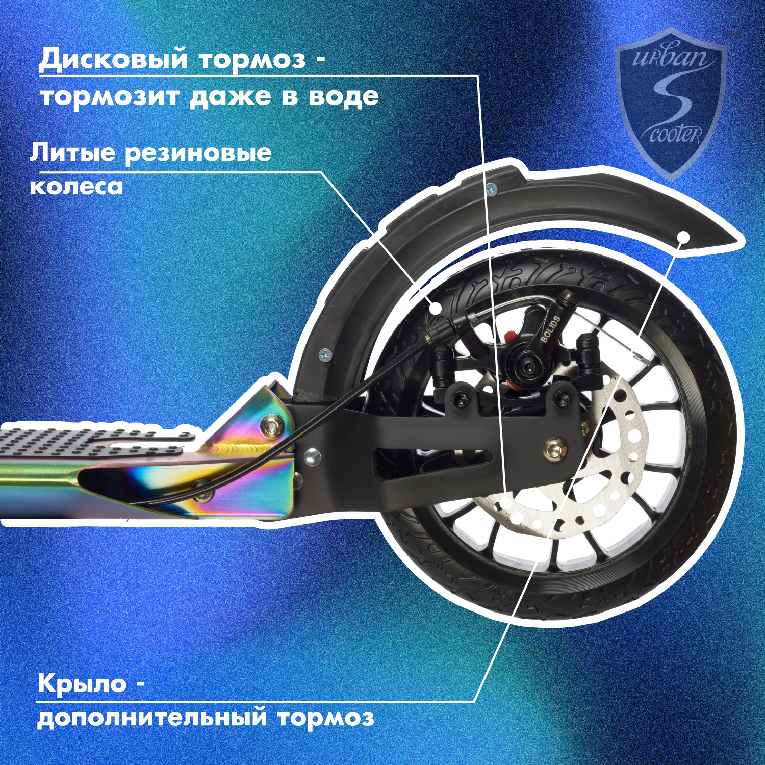 Самокат Urban Scooter Disc Black, с дисковым тормозом, складной, городской, двухколесный