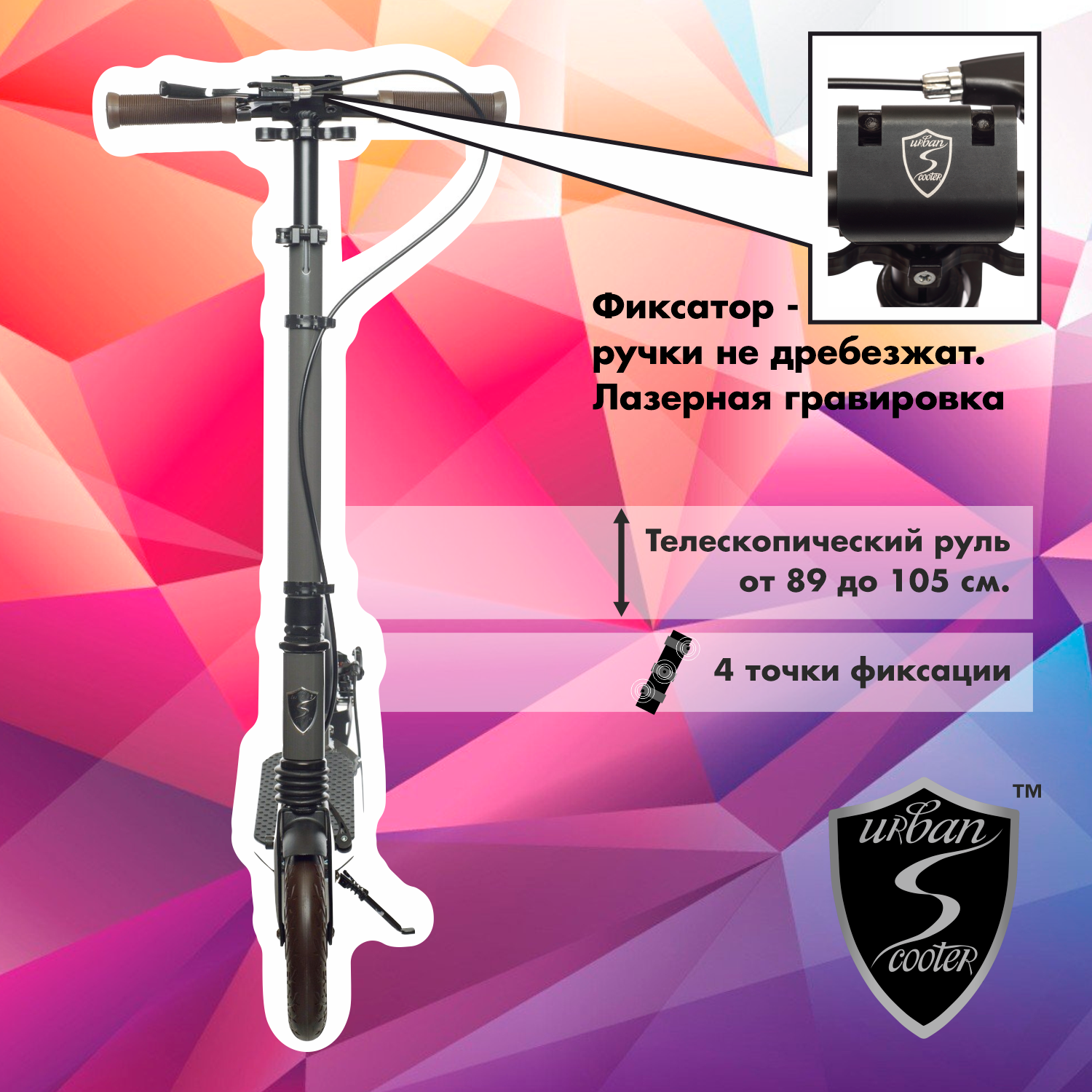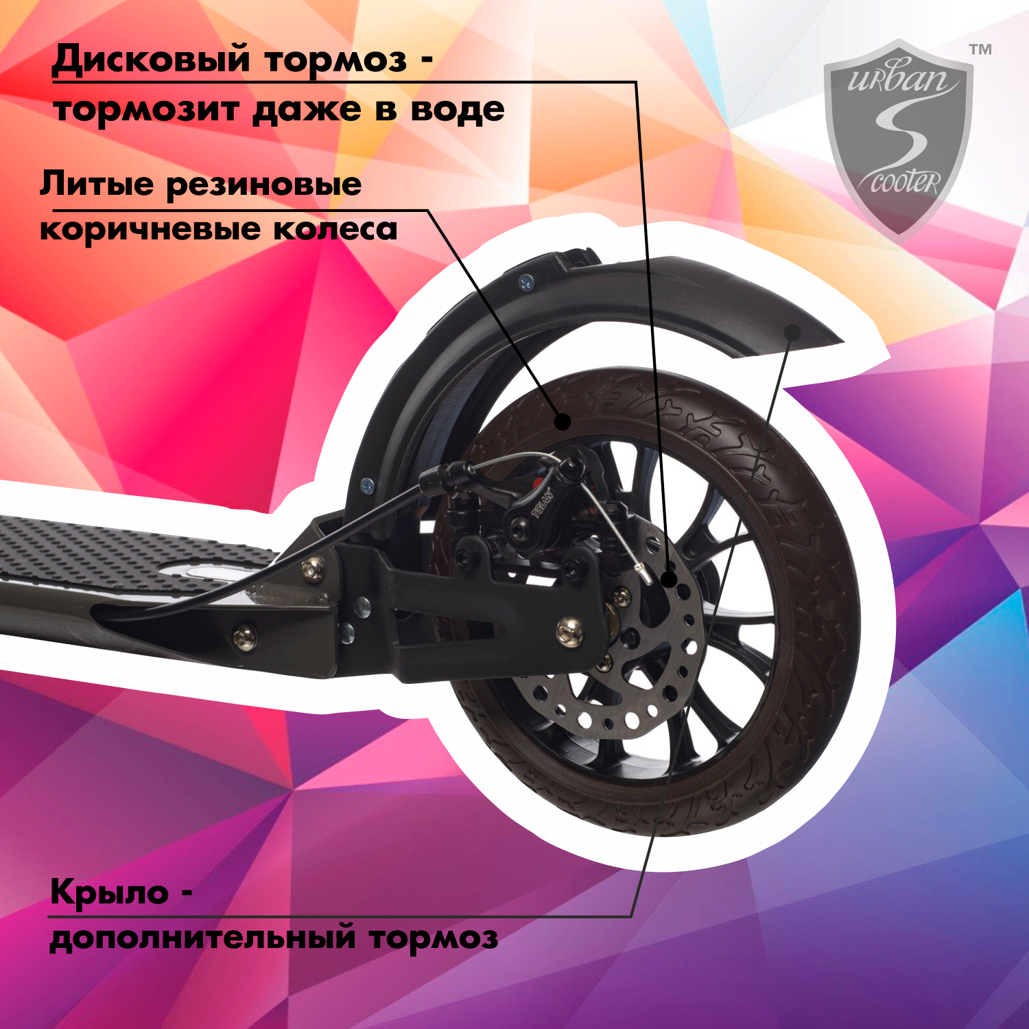 Самокат Urban Scooter Disc Black, с дисковым тормозом, складной, городской, двухколесный