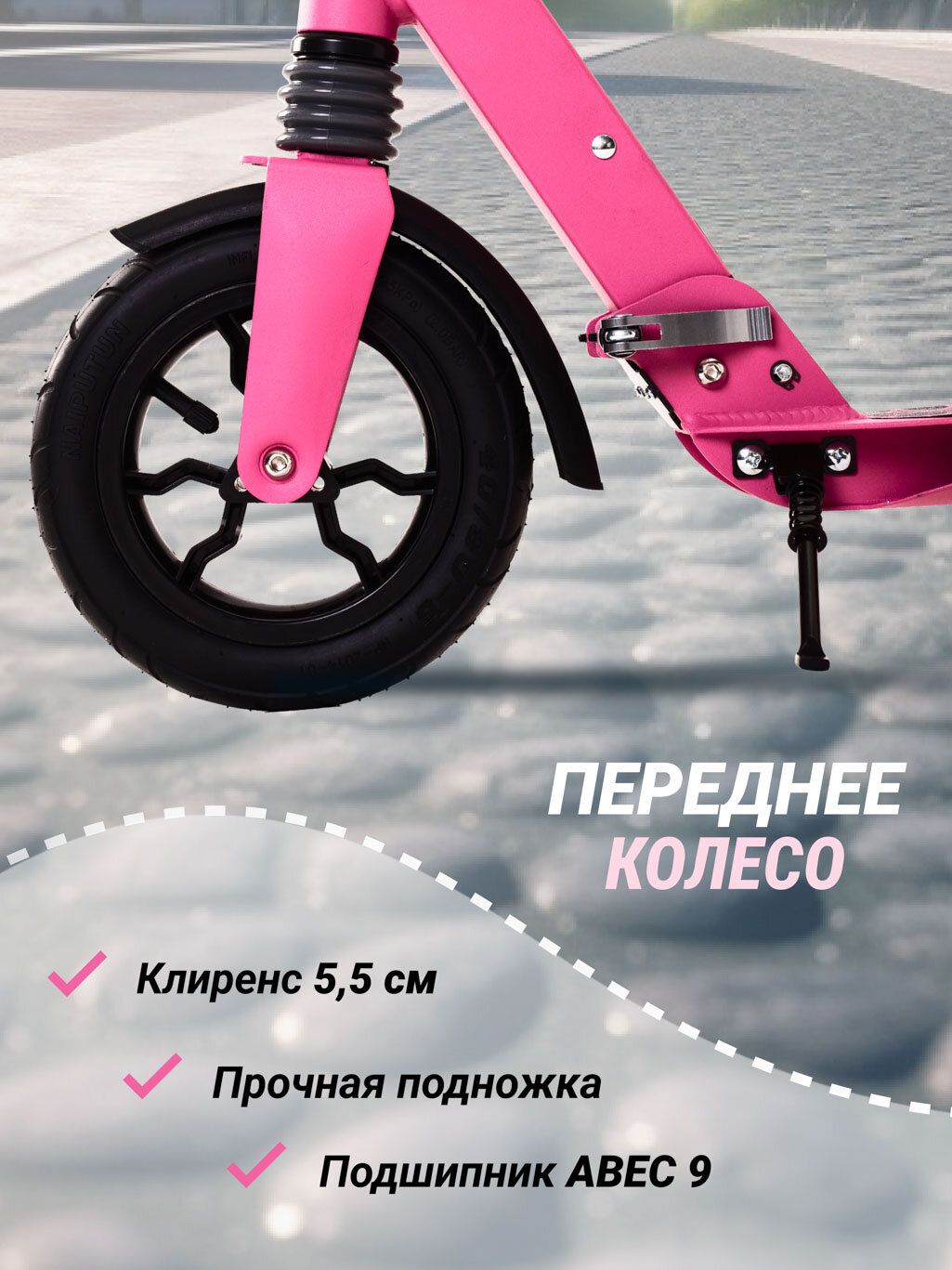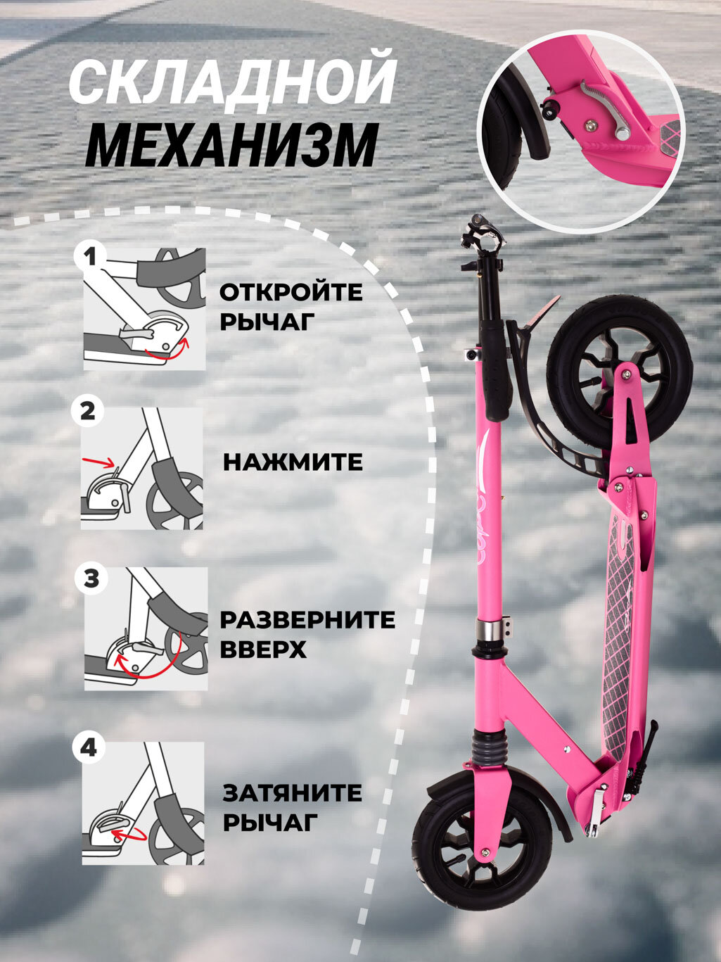 Самокат городской двухколесный Saimaa RIDE с надувными колесами розовый
