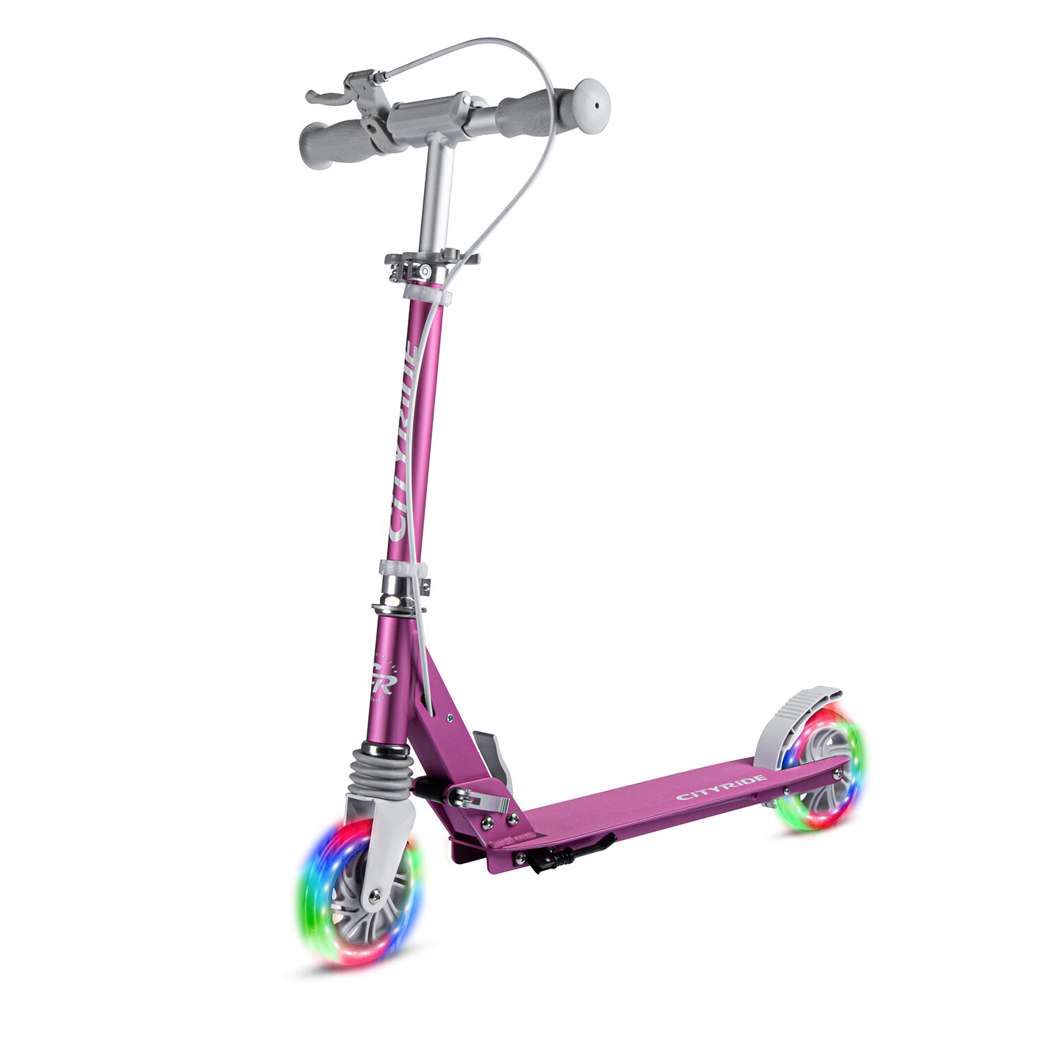 Купить Самокат двухколесный ТМ CITYRIDE, складной, колеса светятся PU 120/120, ручной тормоз, подножка, CR-S2-09PK1