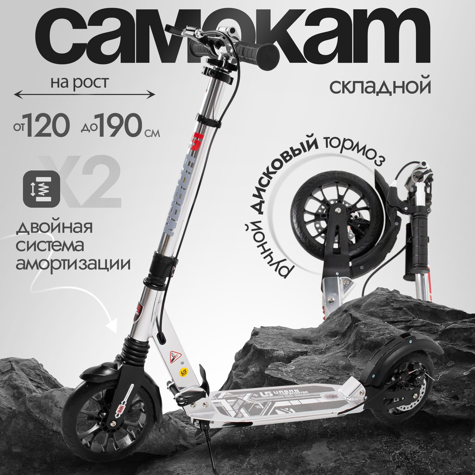 Купить Самокат городской двухколесный Urban scooter с дисковым тормозом серебристый