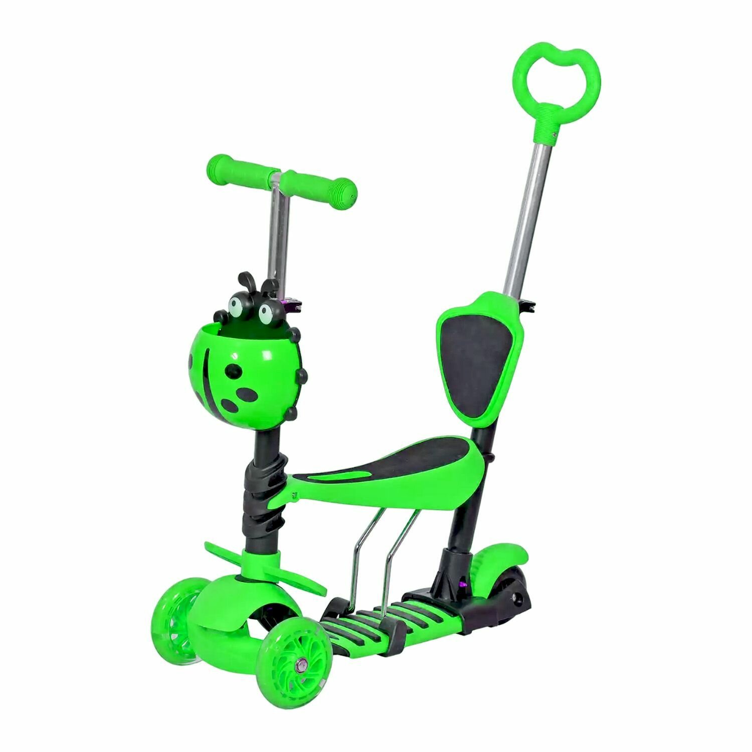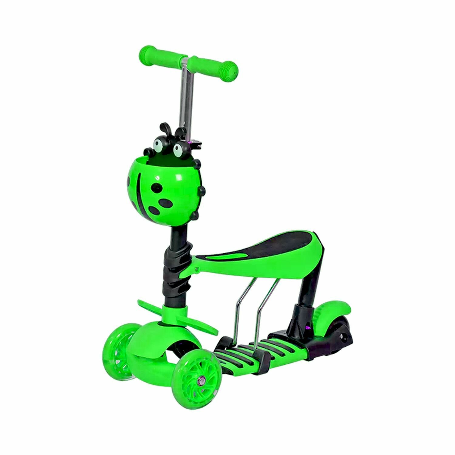Купить Самокат трехколесный детский с сиденьем и ручкой Play Okay H23060701 трансформер 3 в 1, для мальчика и девочки, регулировка высоты ручки, светящиеся колеса, корзина для мелочей ребенка, зеленый