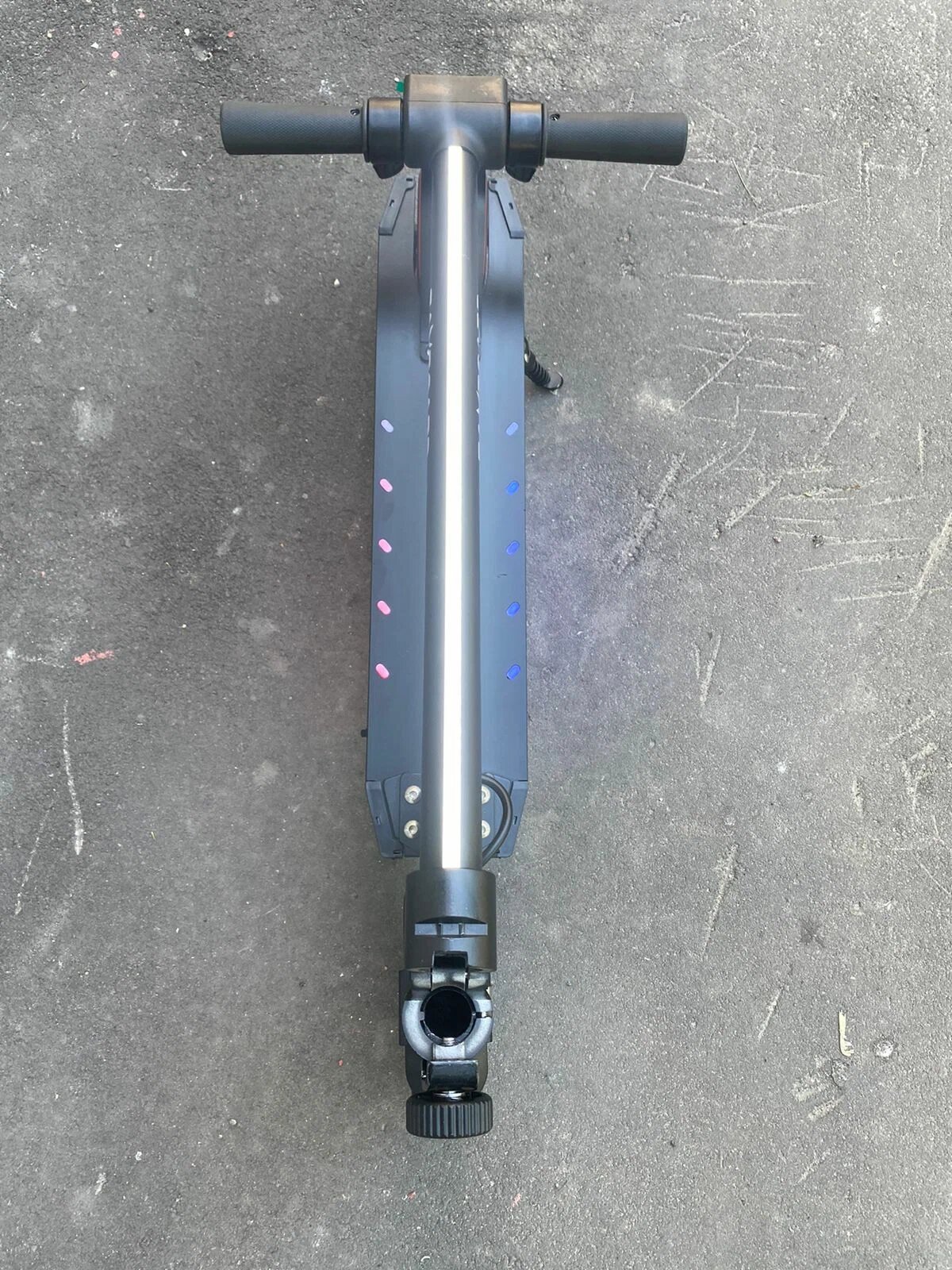 | Особенности электросамоката | дисплей / задний габарит/стоп-сигнал / индикатор заряда / индикатор скорости / ограничитель скорости / передняя фара (фонарь) / подсветка / привод задний |