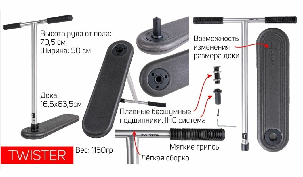 Самокат трюковой батутный TECH TEAM Twister черный,хром NN010633 NN010633 интересное: