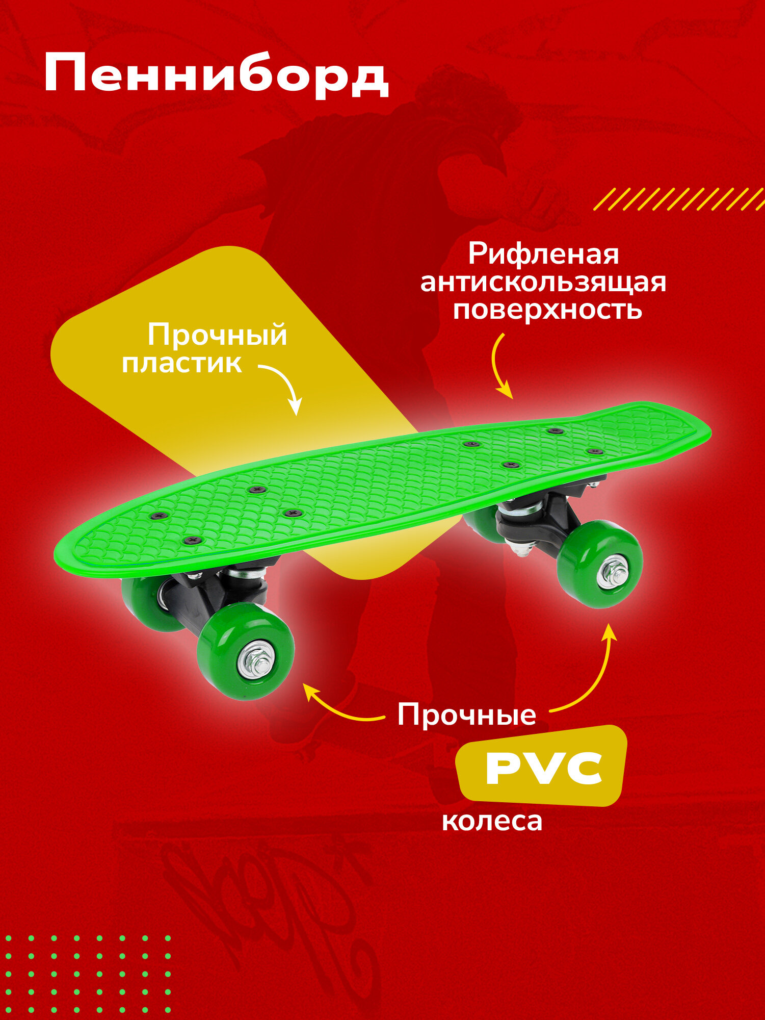 Ниже Вы можете прочитать отзывы на Скейтборд-пенниборд пластик 43 см., колеса PVC, крепления пластик, зелёный, ознакомится с подробными характеристиками, посмотреть интересные обзоры и фотографии на Скейтборд-пенниборд пластик 43 см., колеса PVC, крепления пластик, зелёный.