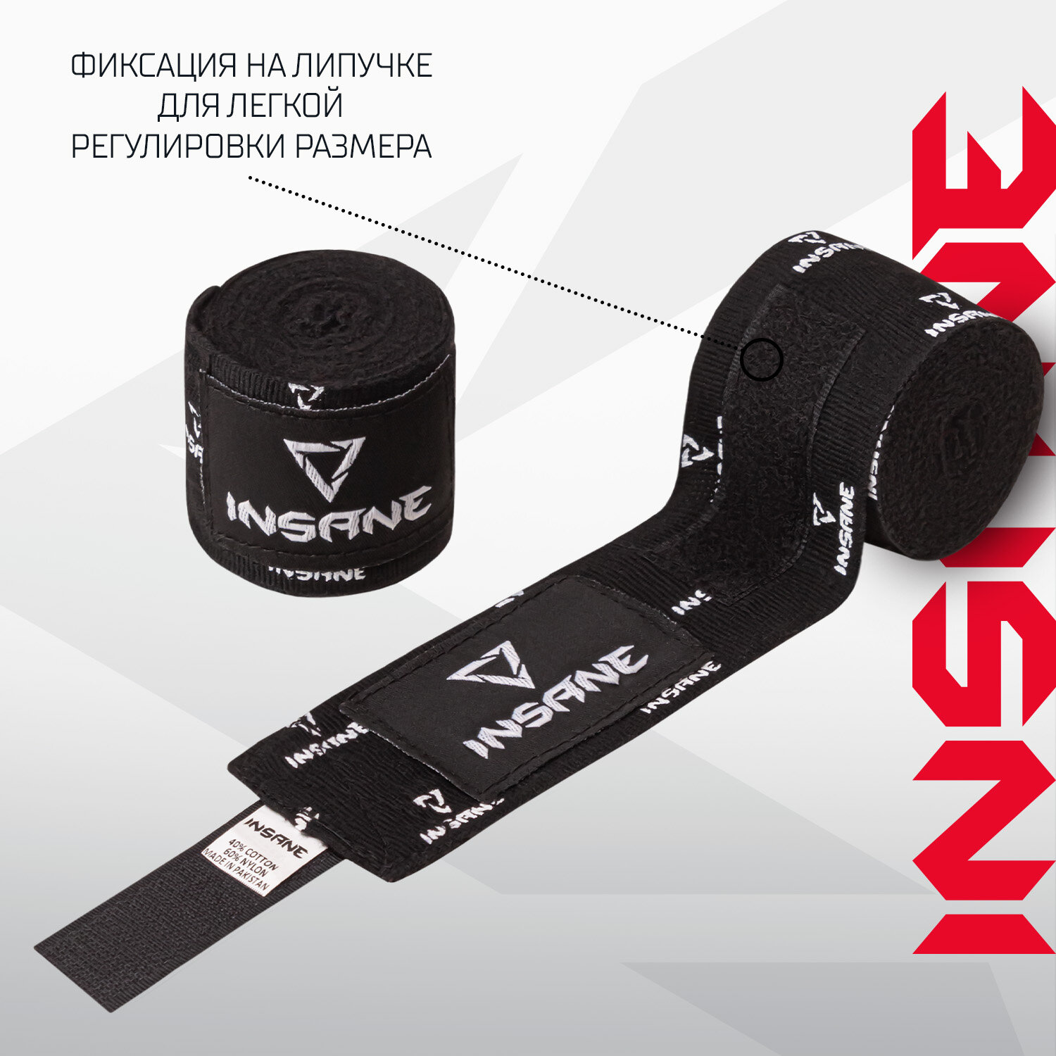 Бинт боксерский INSANE PRINT IN23-HW400, хлопок/нейлон, черный, 2,5 м интересное: