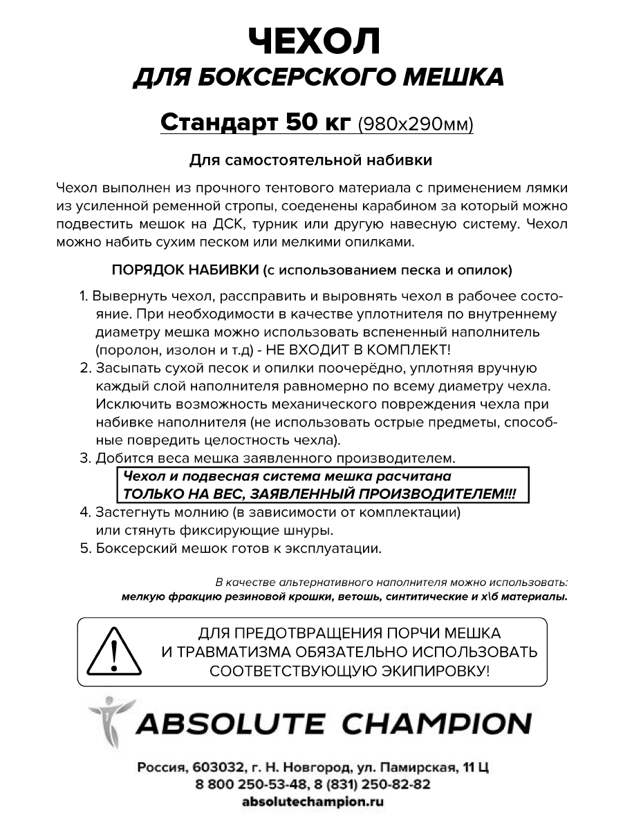 Чехол для Груши боксерской, мешок для бокса спорт Стандарт 50 кг чёрный интересное: