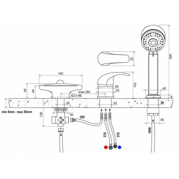 Врезной смеситель каскадный для ванны RS 025.00 Rosa
