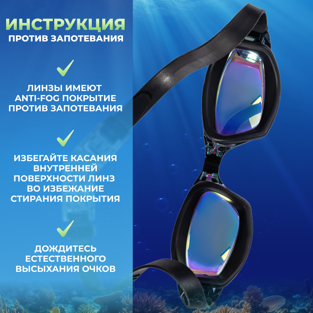 Купить Очки для плавания детские, взрослые, женские, мужские / Подводные плавательные очки для бассейна черные / стекла хамелеон
