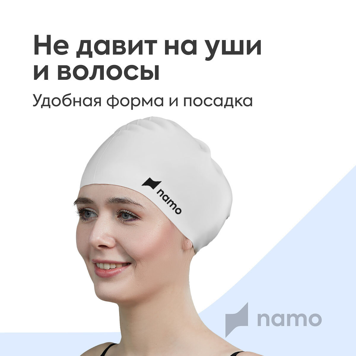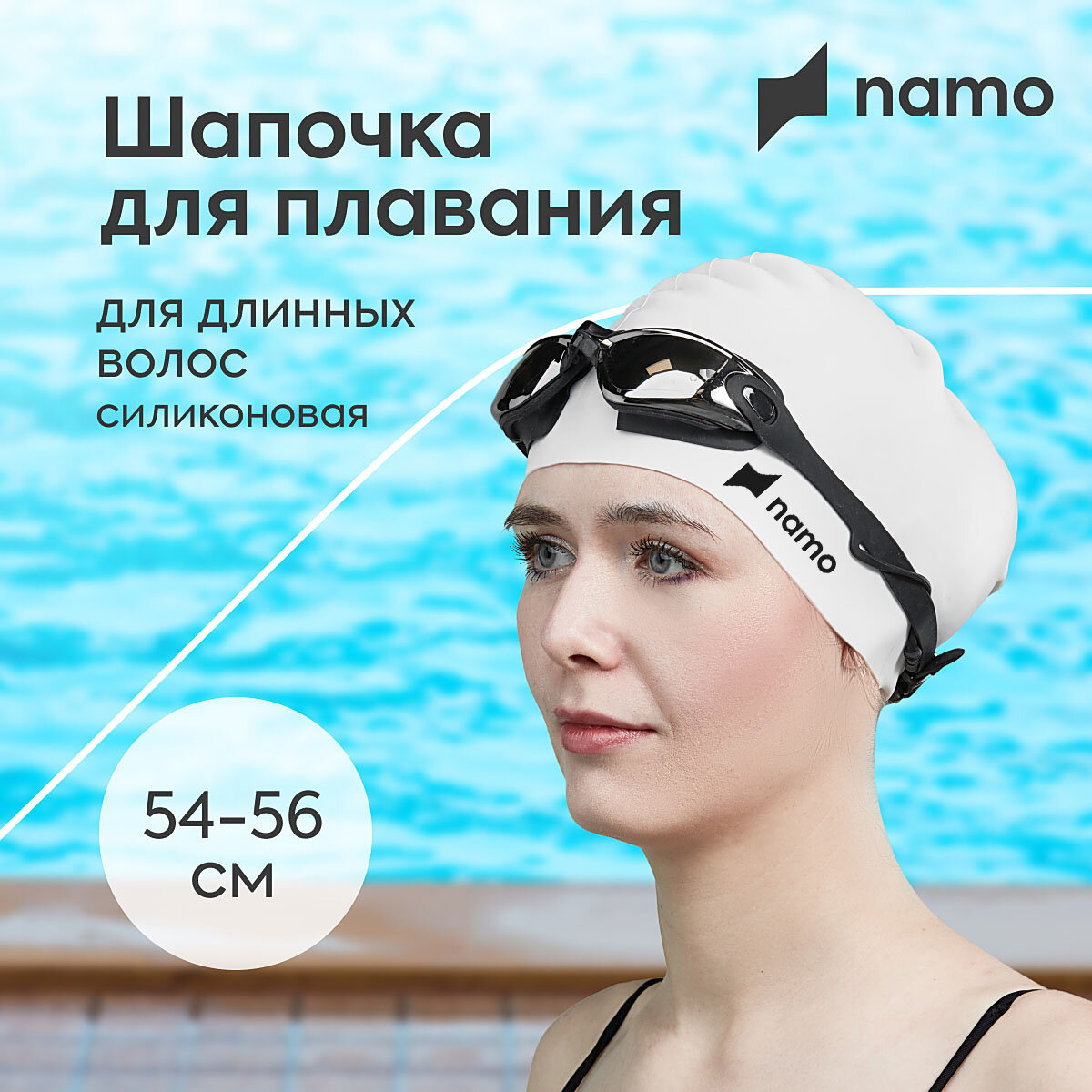 Шапочка для плавания для длинных волос силиконовая NAMO, белая, 52/60 интересное: