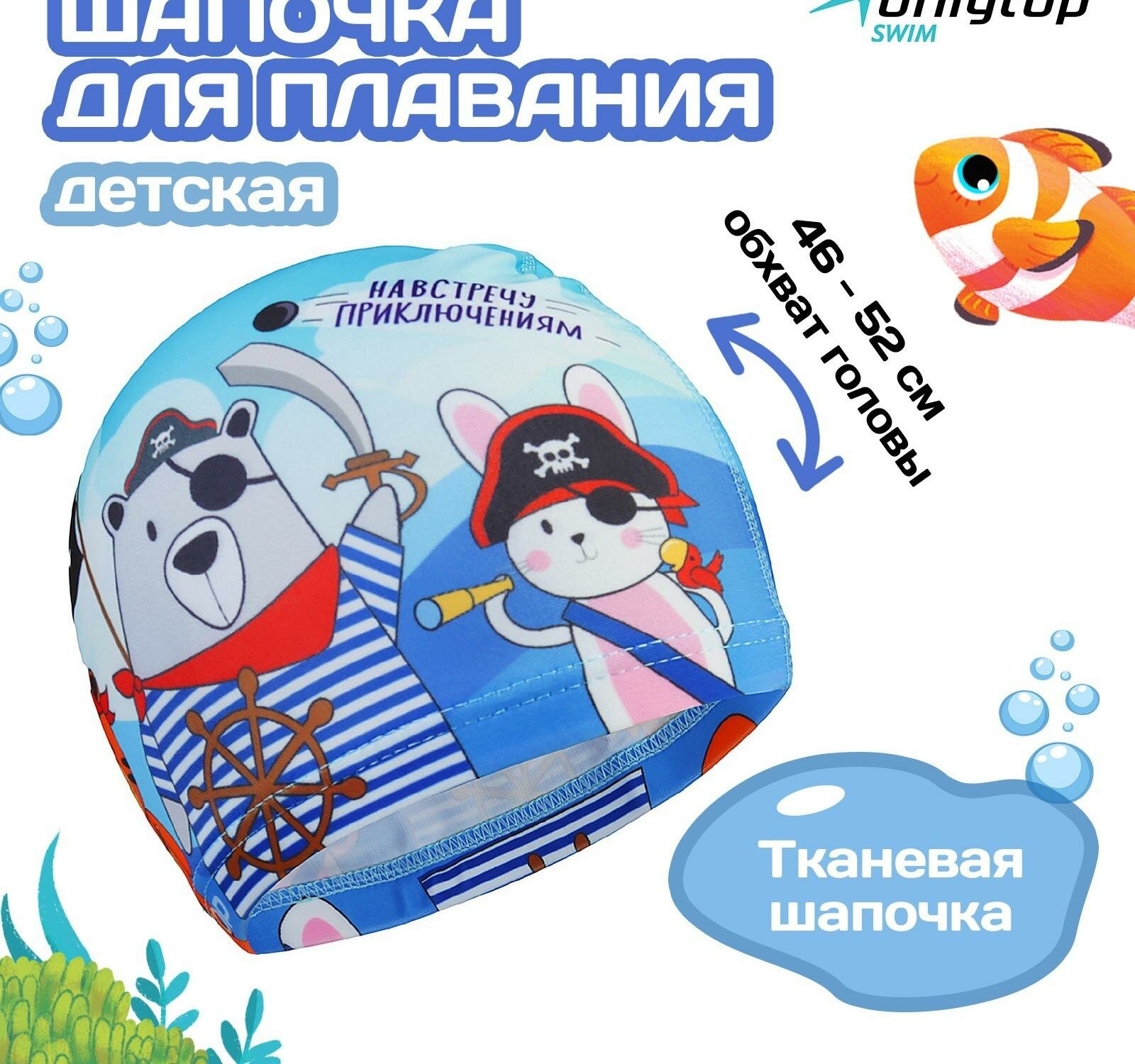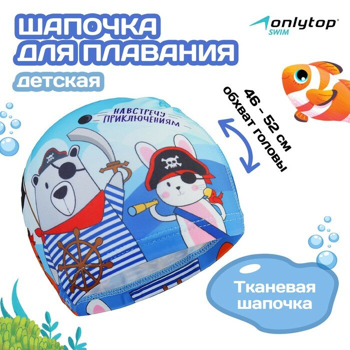 Купить Шапочка для плавания детская ONLYTOP «Пираты», тканевая, обхват 46-52 см