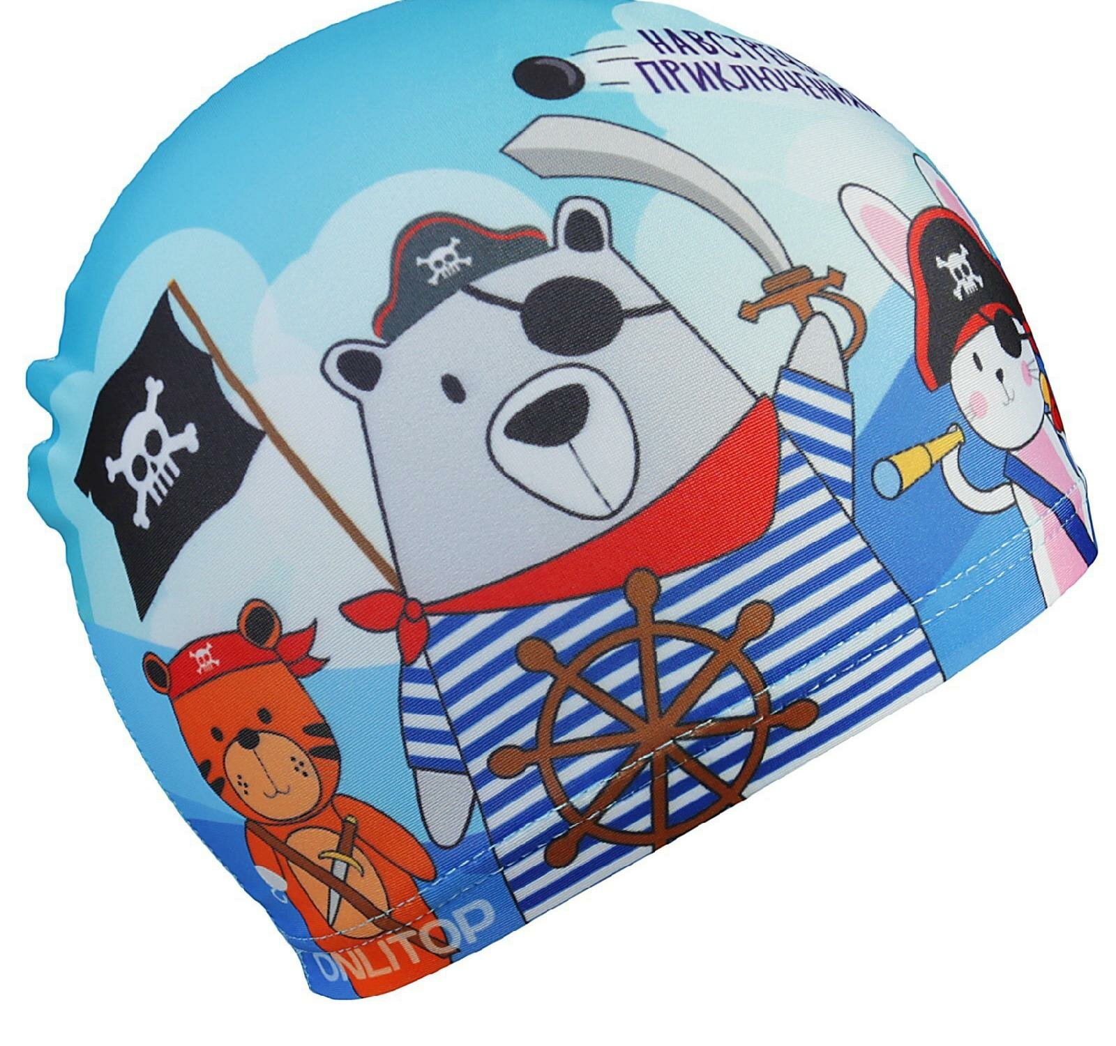 Шапочка для плавания детская ONLYTOP "Пират", тканевая, обхват 46-52 см, 1 шт.