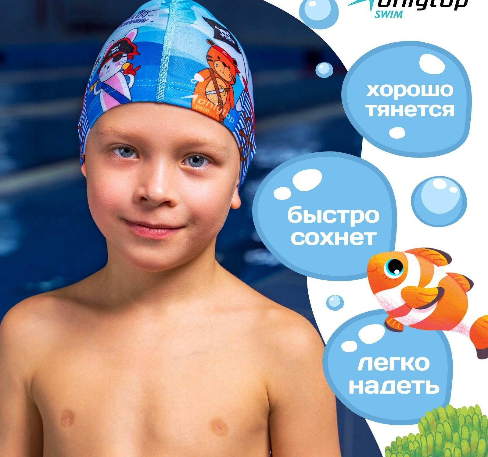 СохранитьШапочка для плавания детская ONLYTOP «Пираты», тканевая, обхват 46-52 см интересное: