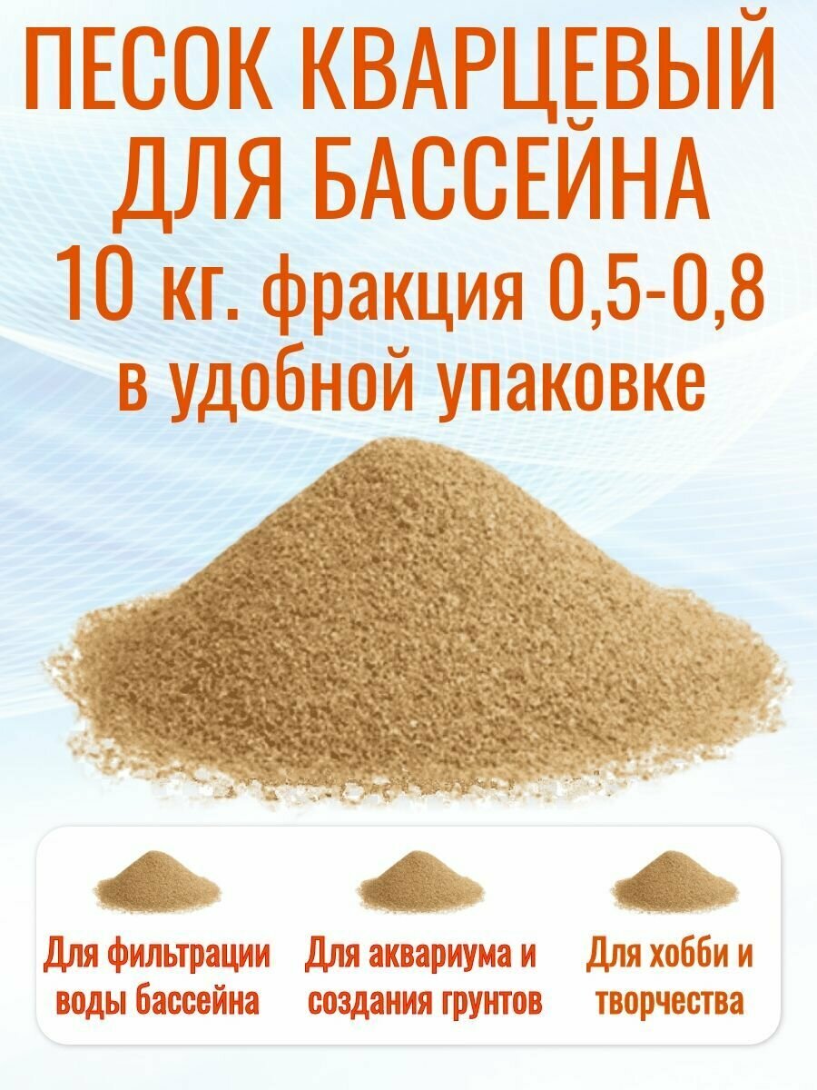Кварцевый песок аквандо, окатанный, для песочных фильтров бассейна любых марок, фр. 0,5-0,8 мм, 10 кг. мешок в коробке интересное: