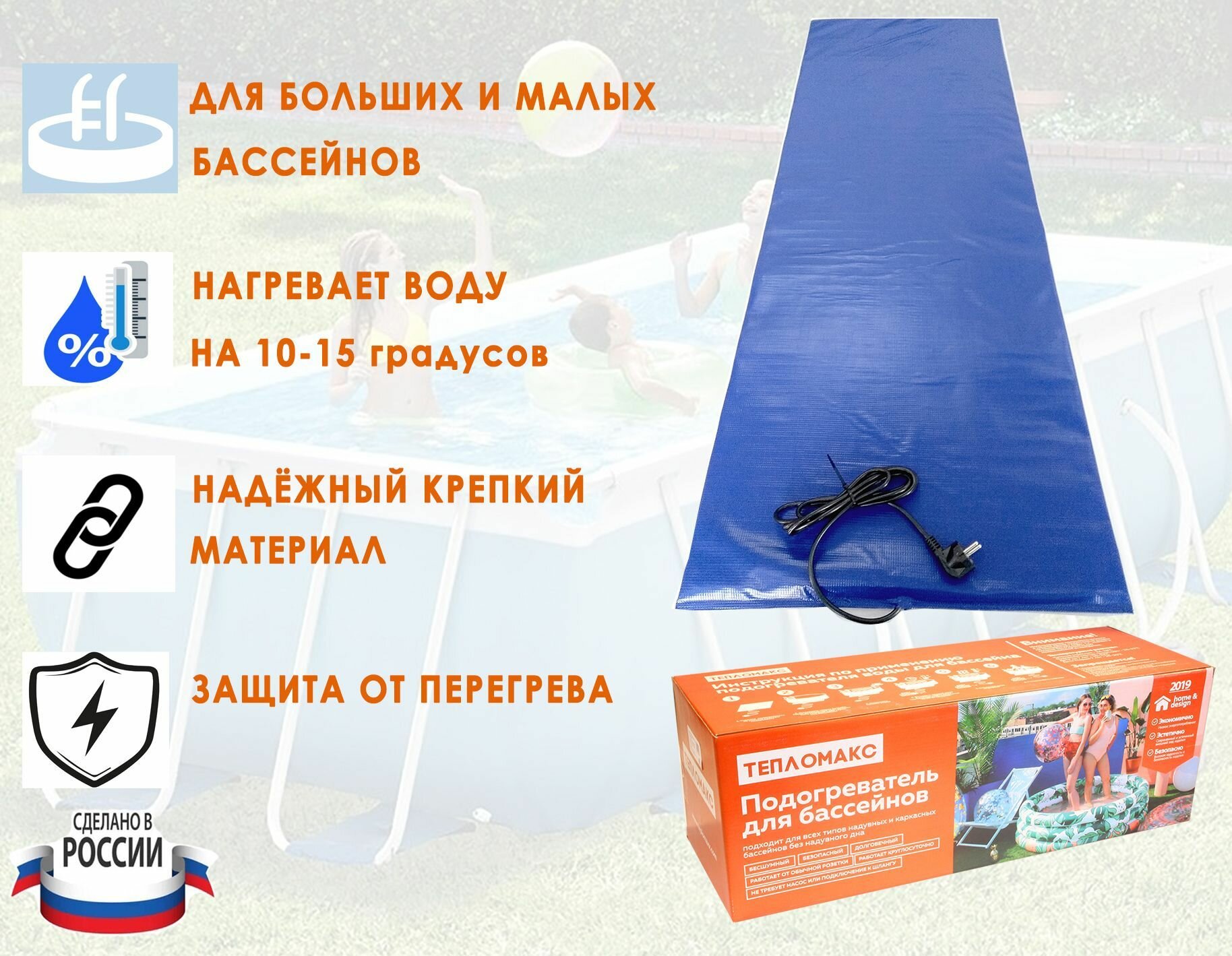 Электроподогреватель "ТеплоМакс", для воды в бассейне, 150х53 см