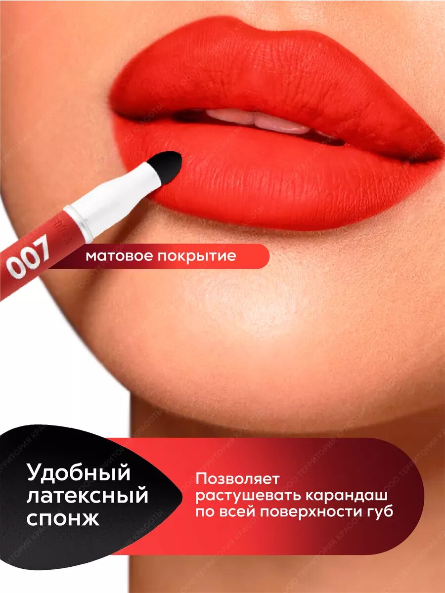 | Плюсы: | Мягкий, хорошо тушуется и делает ровный контур губ |