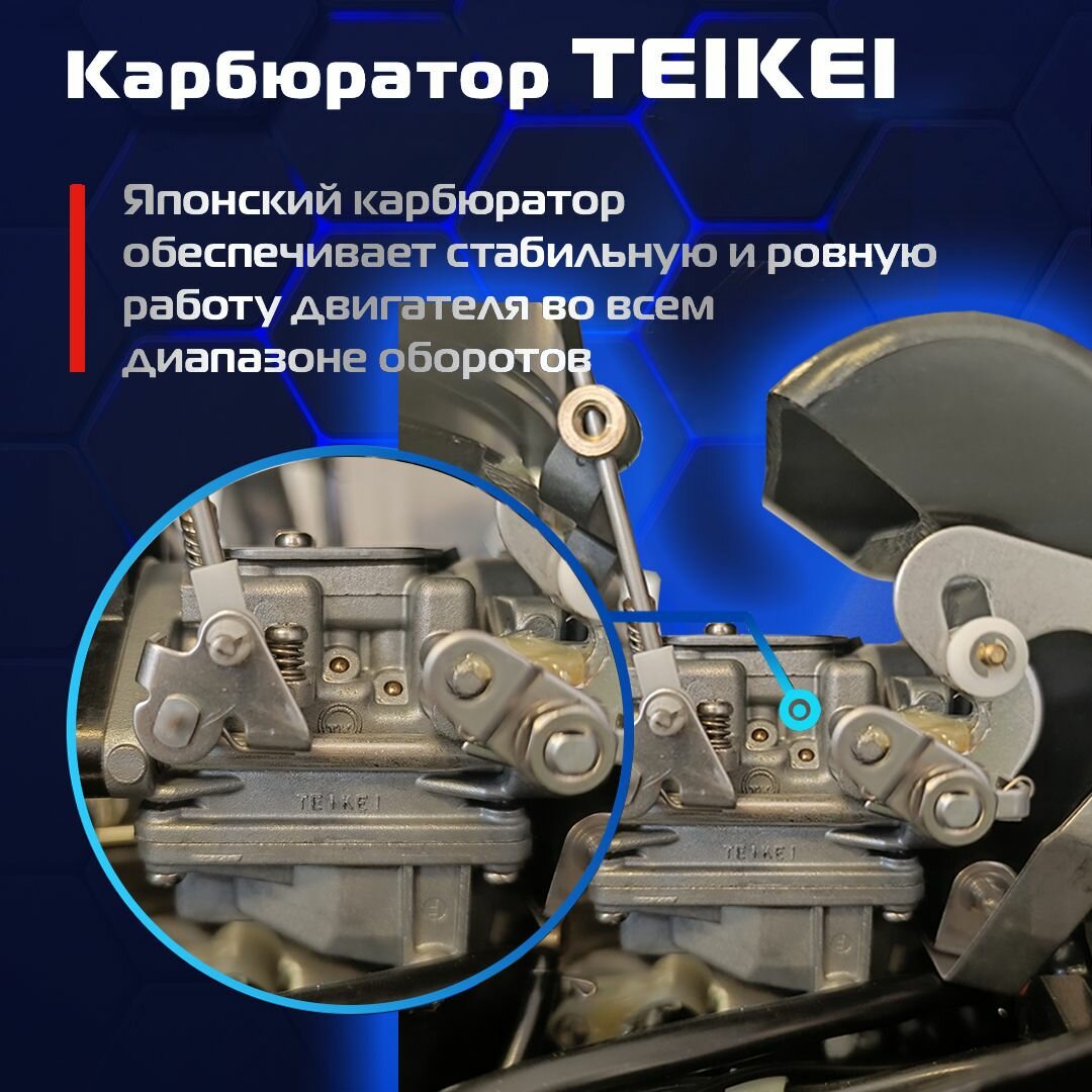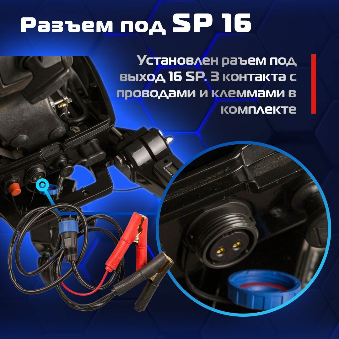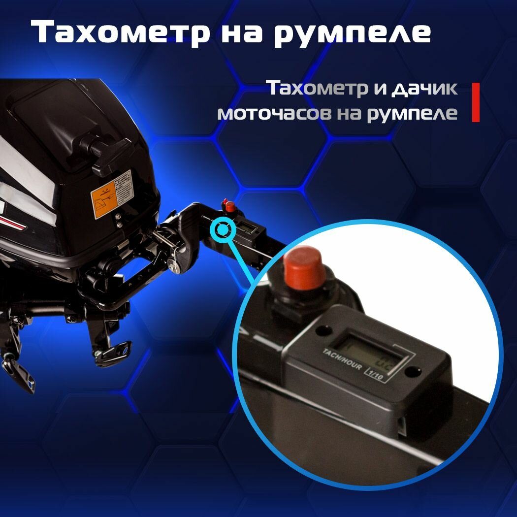 | Особенности | аварийный выключатель двигателя, наклон румпеля, передвижение по мелководью, регулировка заглубления винта, регулировка угла наклона мотора, электронная система зажигания |