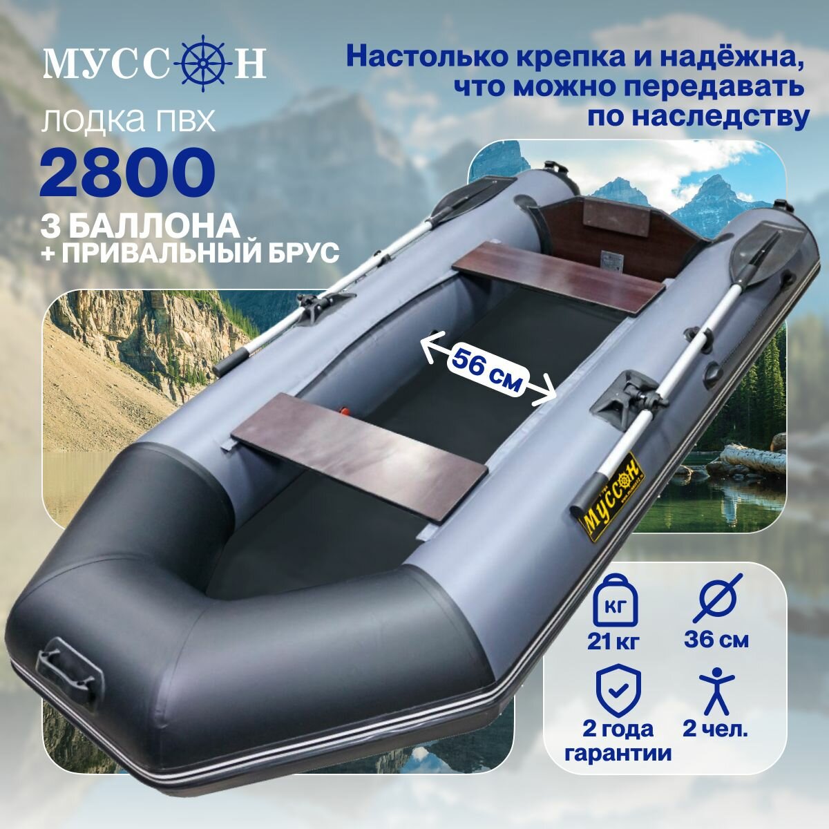 Лодка ПВХ надувная для рыбалки Муссон 2800 стационарный транец под мотор, серо черная интересное: