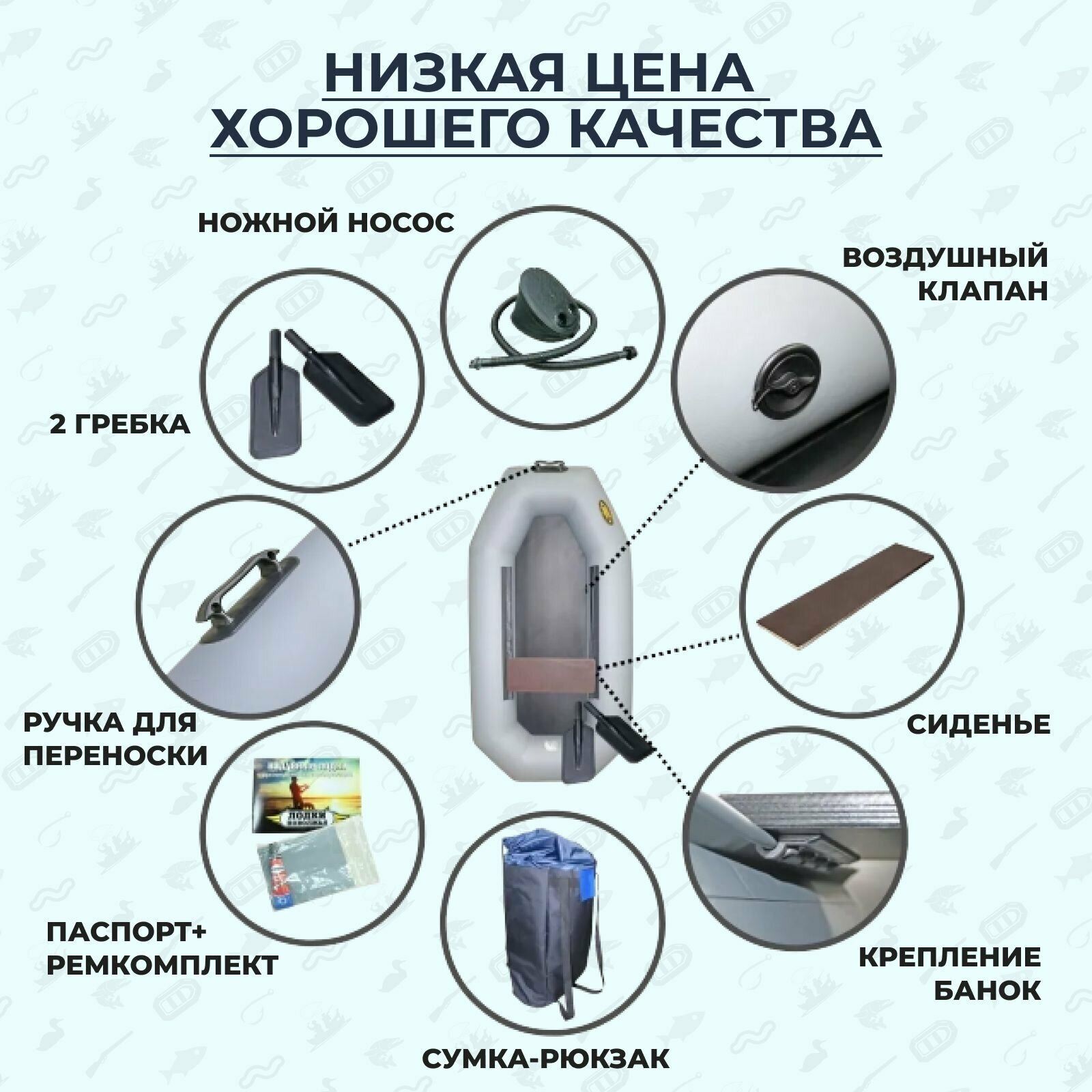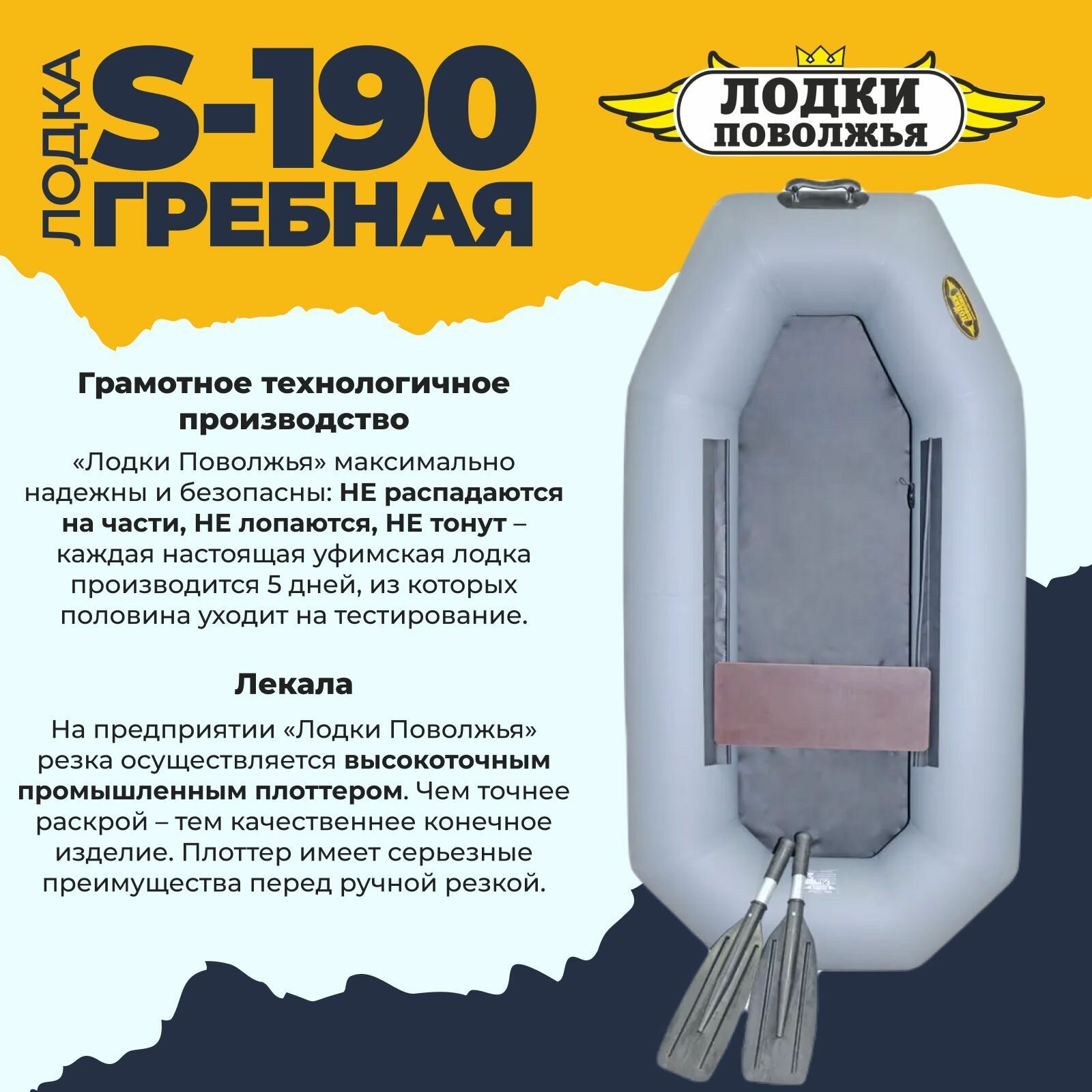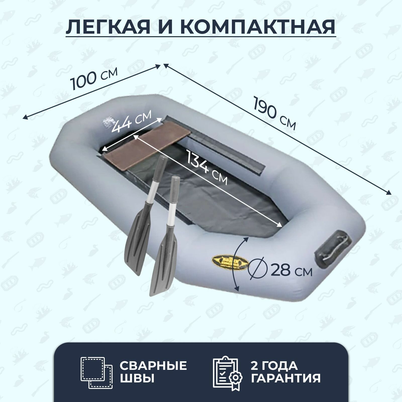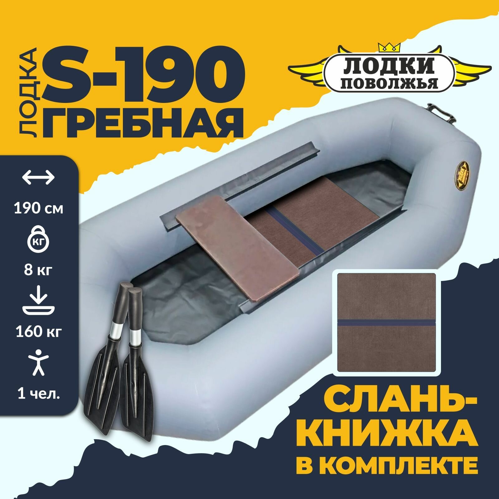 Лодка надувная для рыбалки ПВХ Лодки Поволжья S-190 гр (гребки) + сплошной ПОЛ слань в комплекте, одноместная, серая интересное: