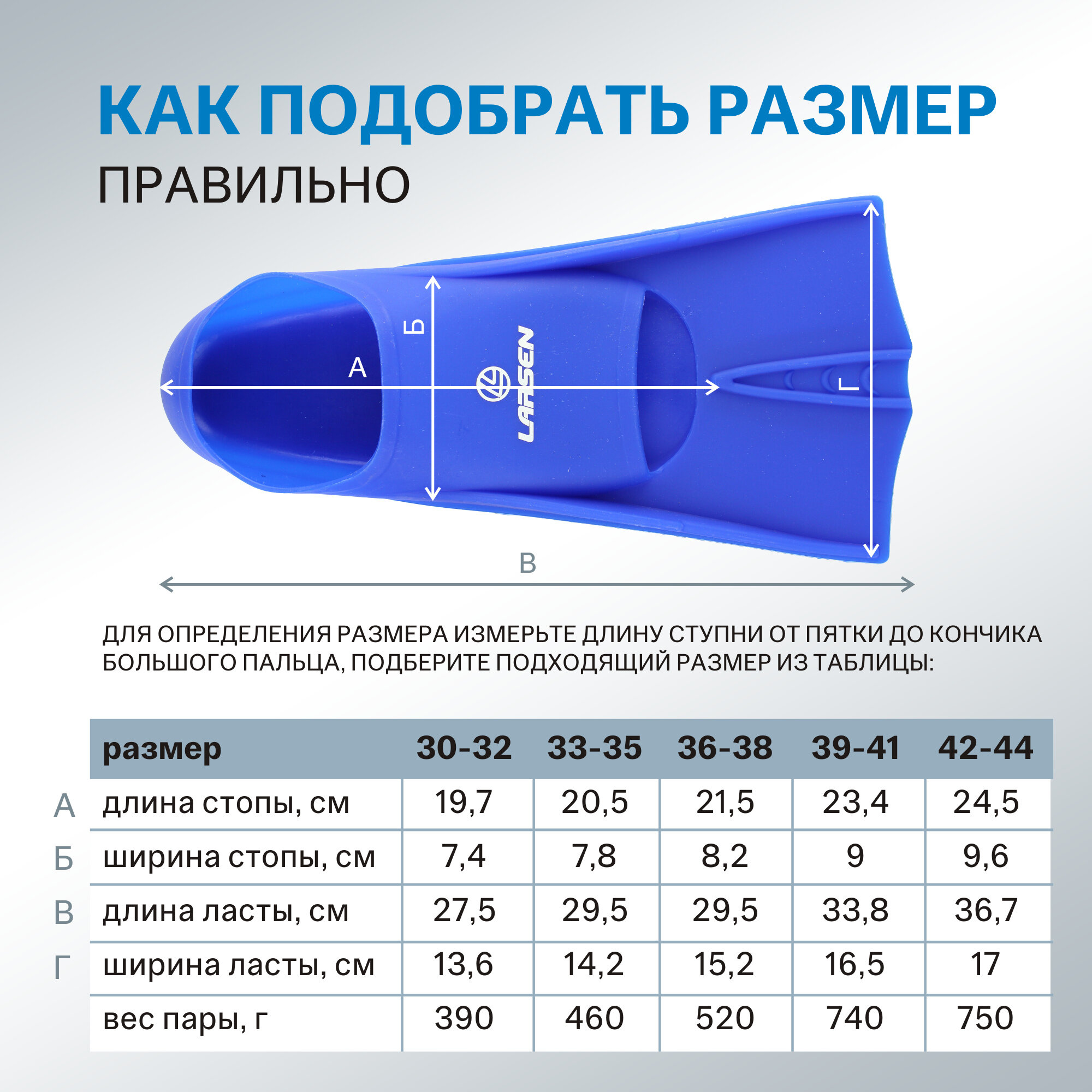 Ласты Larsen укороченные силиконовые 6975 голубой