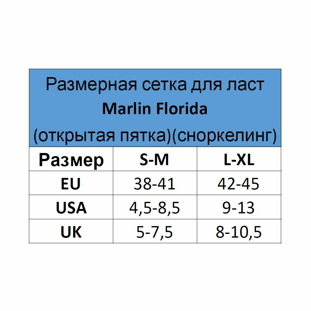 Ласты для снорклинга с открытой пяткой Marlin FLORIDA blue 42/45 (L/XL)