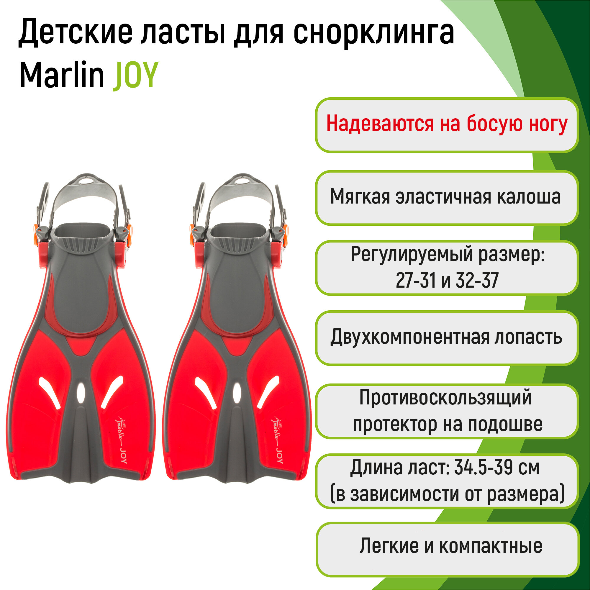 СохранитьЛасты детские Marlin Joy Красные размер 32-37 интересное:
