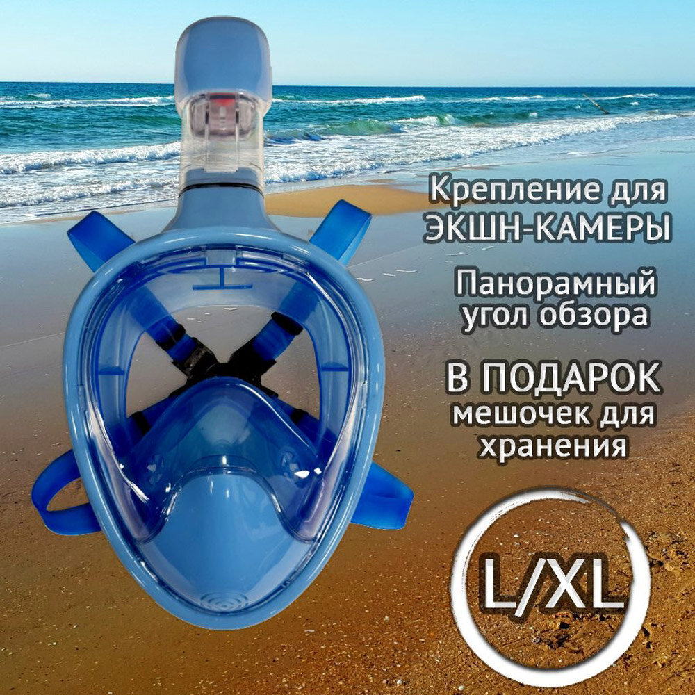 Подводная маска для плавания полнолицевая, размер L, голубой интересное: