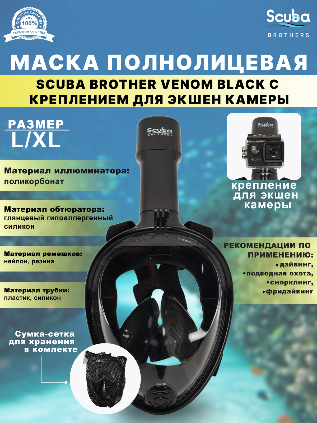 Купить Маска полнолицевая SCUBA BROTHERS VENOM BLACK, с креплением экшн камеры, р-р L/XL