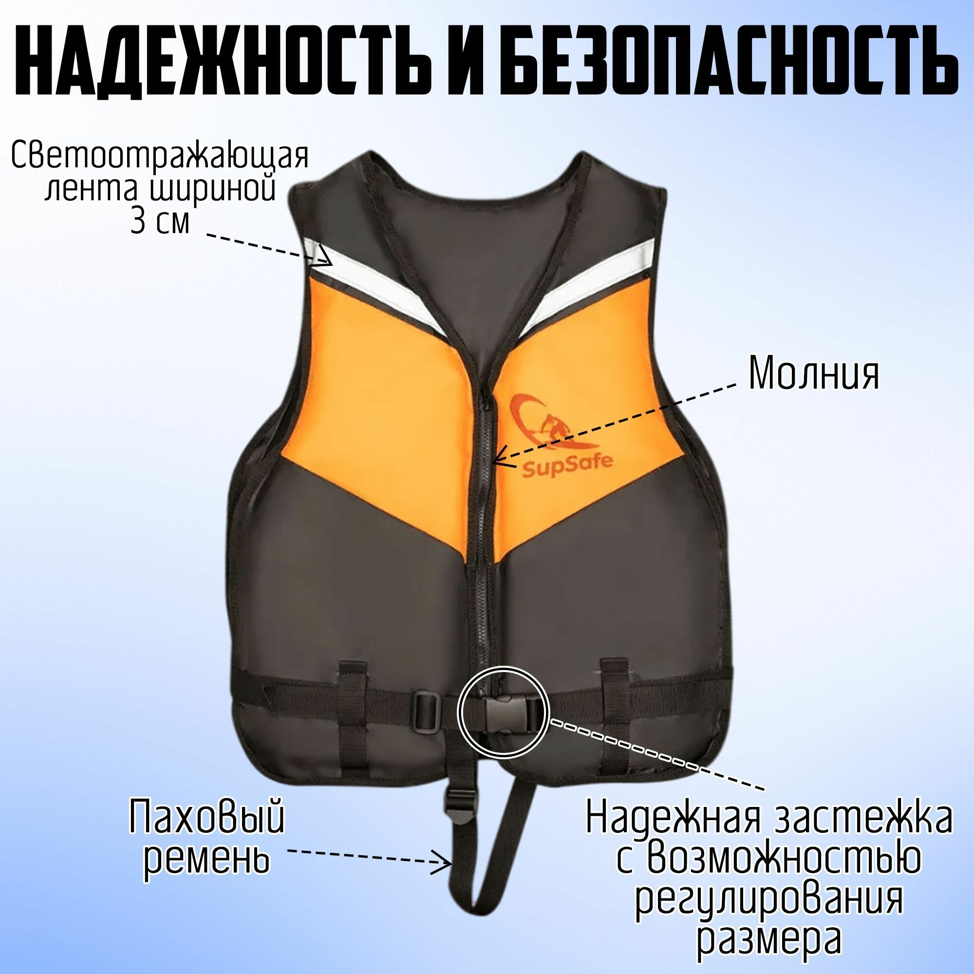 Купить Спасательный жилет SupSafe до 120 кг, 52-54 черный;оранжевый